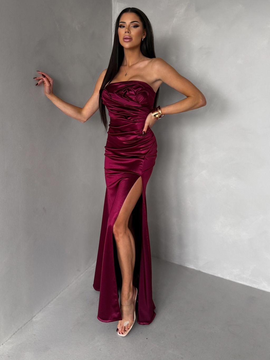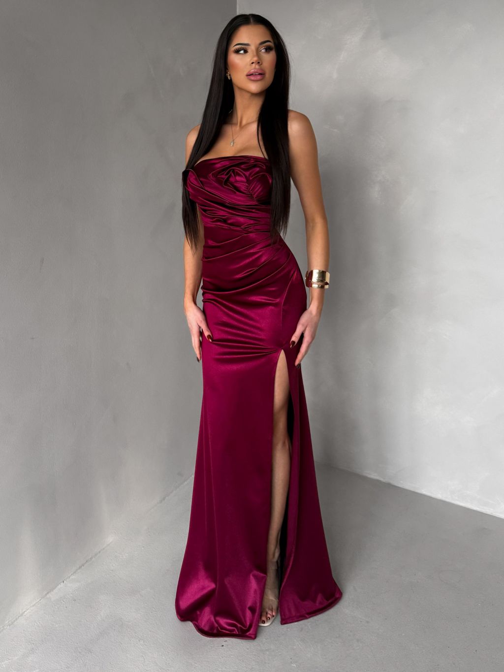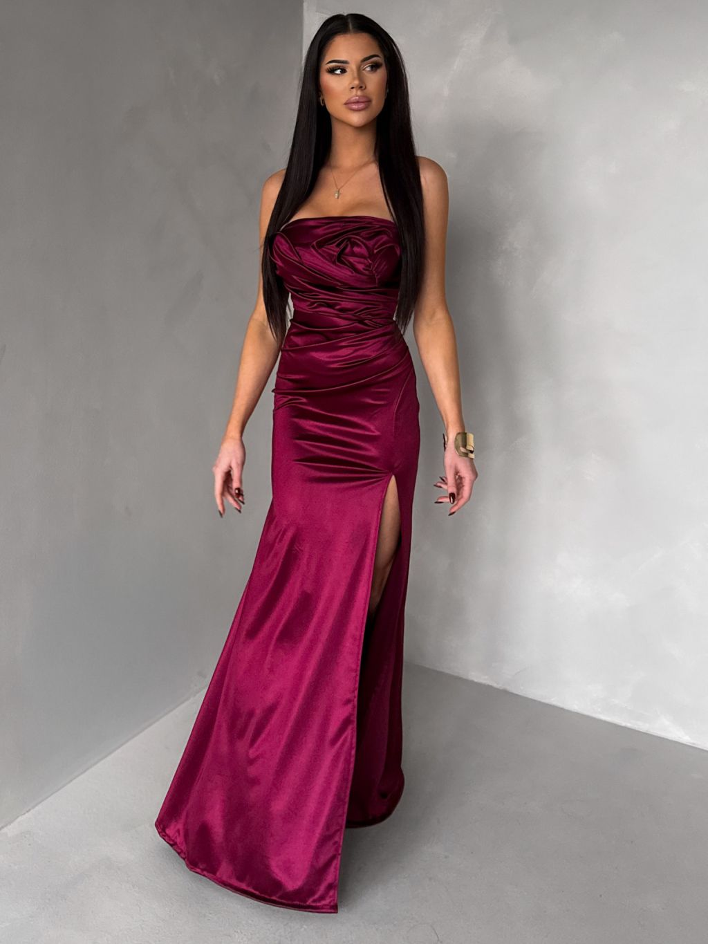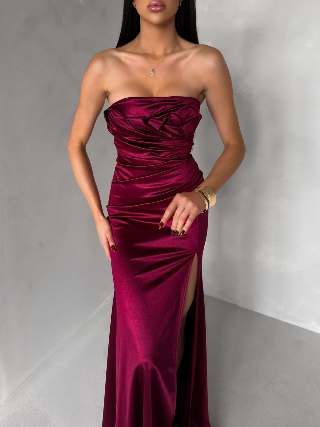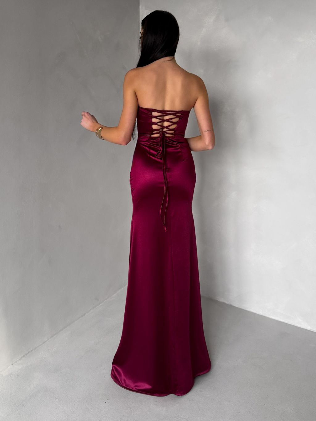 Vínové spoločenské korzetové šaty ZONTIRE bez ramienok