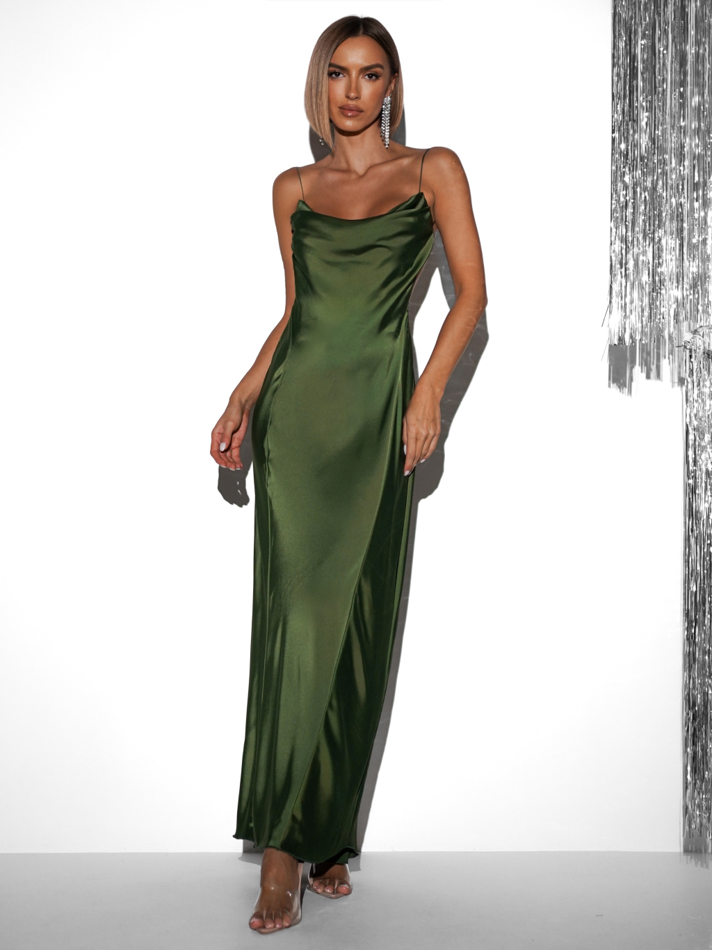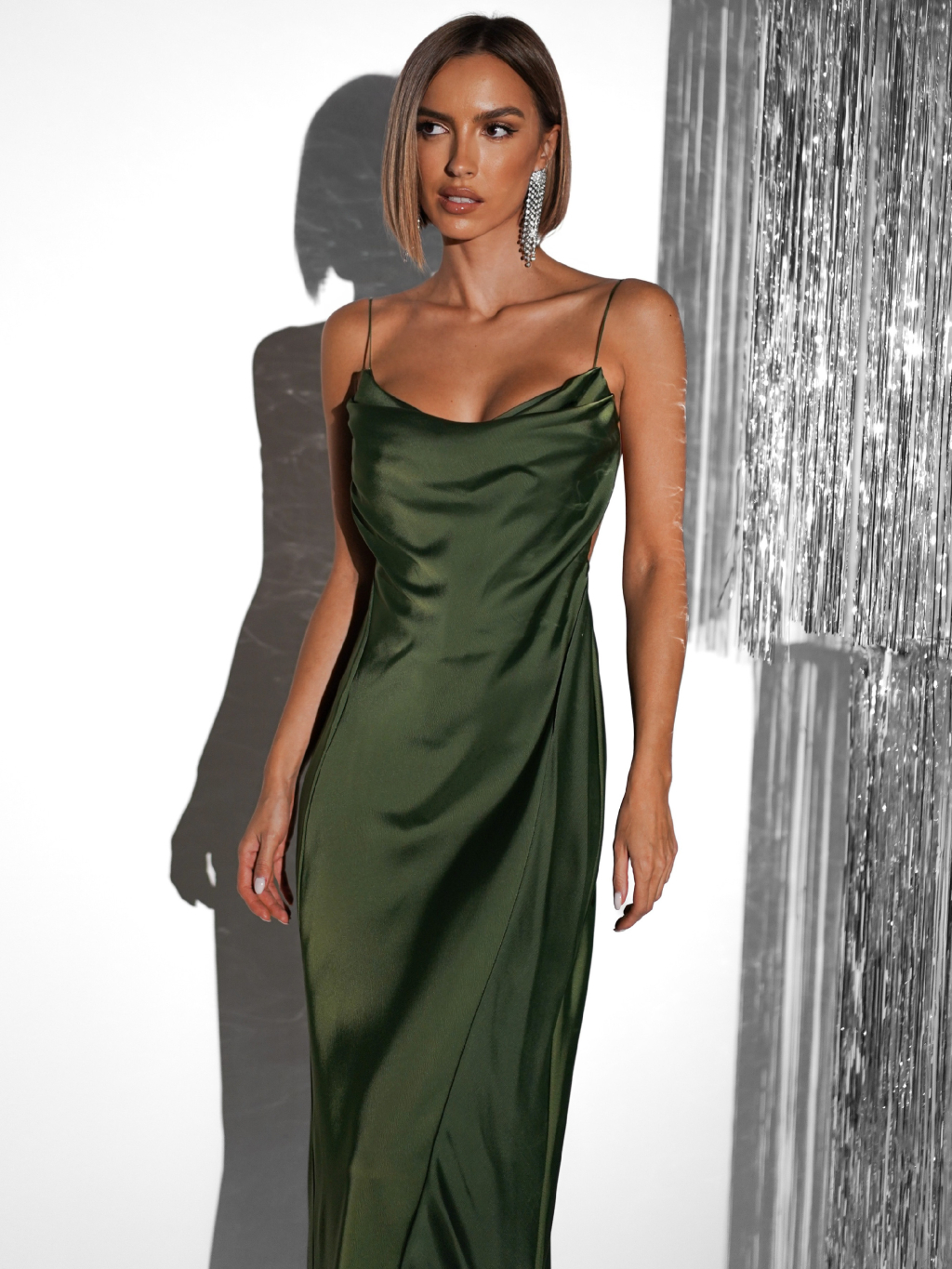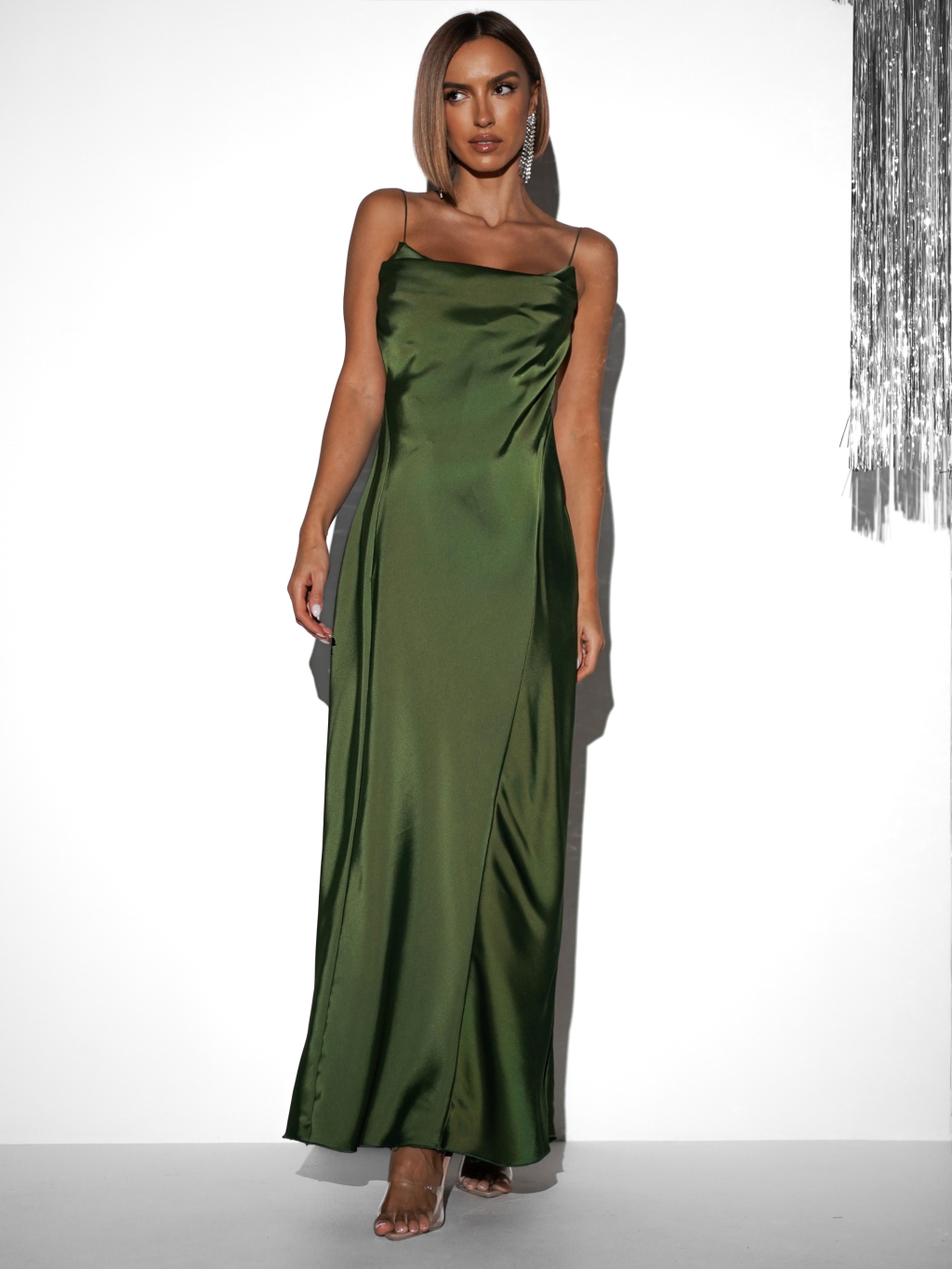 Zelené dlhé saténové šaty UNUTA s holým chrbtom