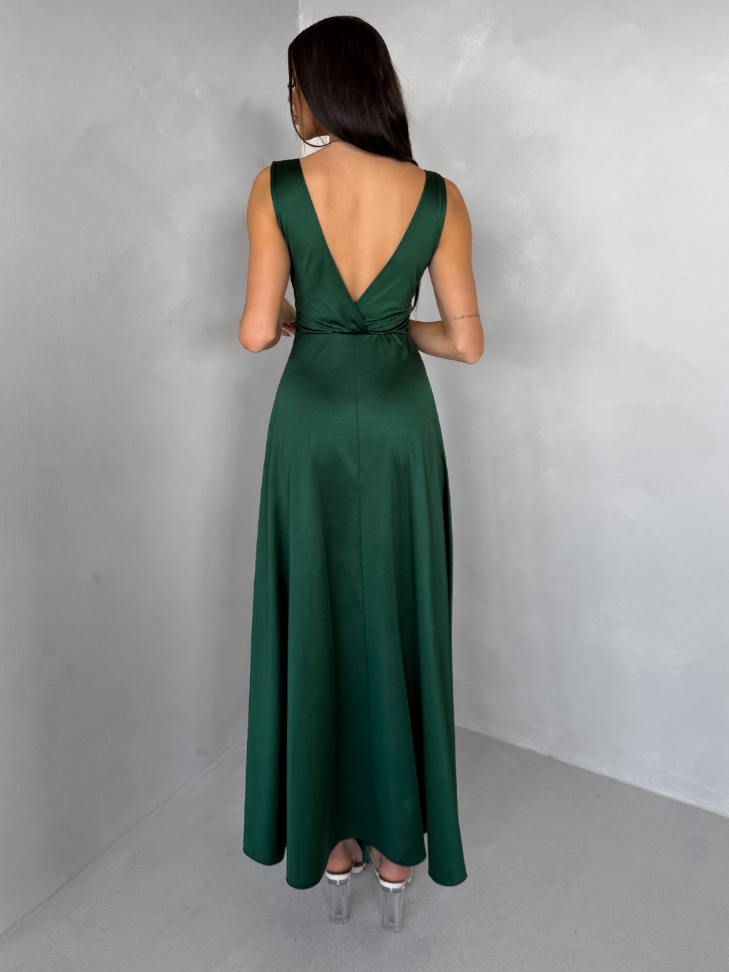 Zelené saténové spoločenské jednotke šaty EZMIRA