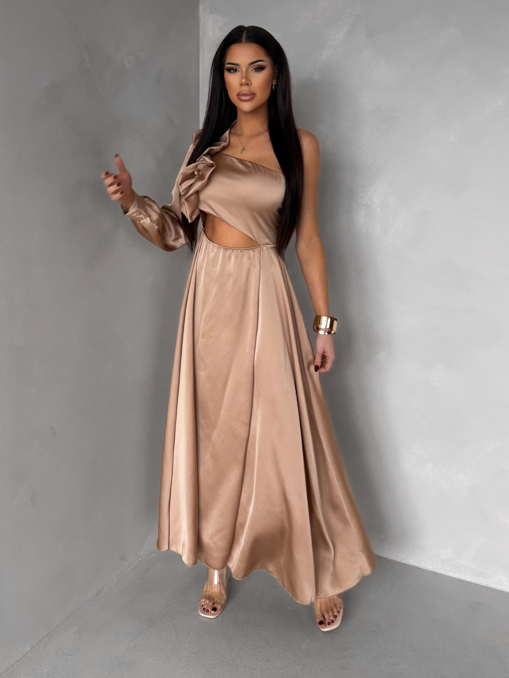 Zlaté dlhé saténové spoločenské šaty ZAYVIX