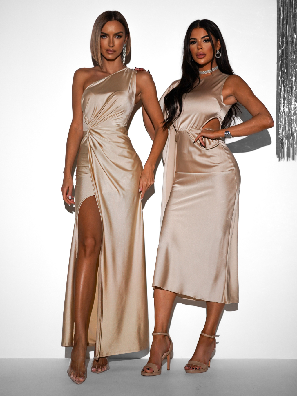 Zlaté koktailové midi šaty JUTTA s prestrihmi