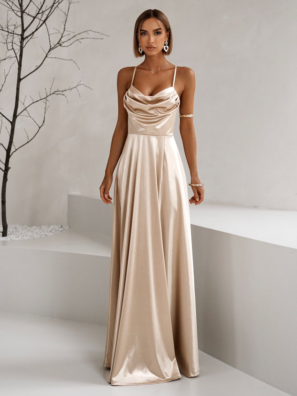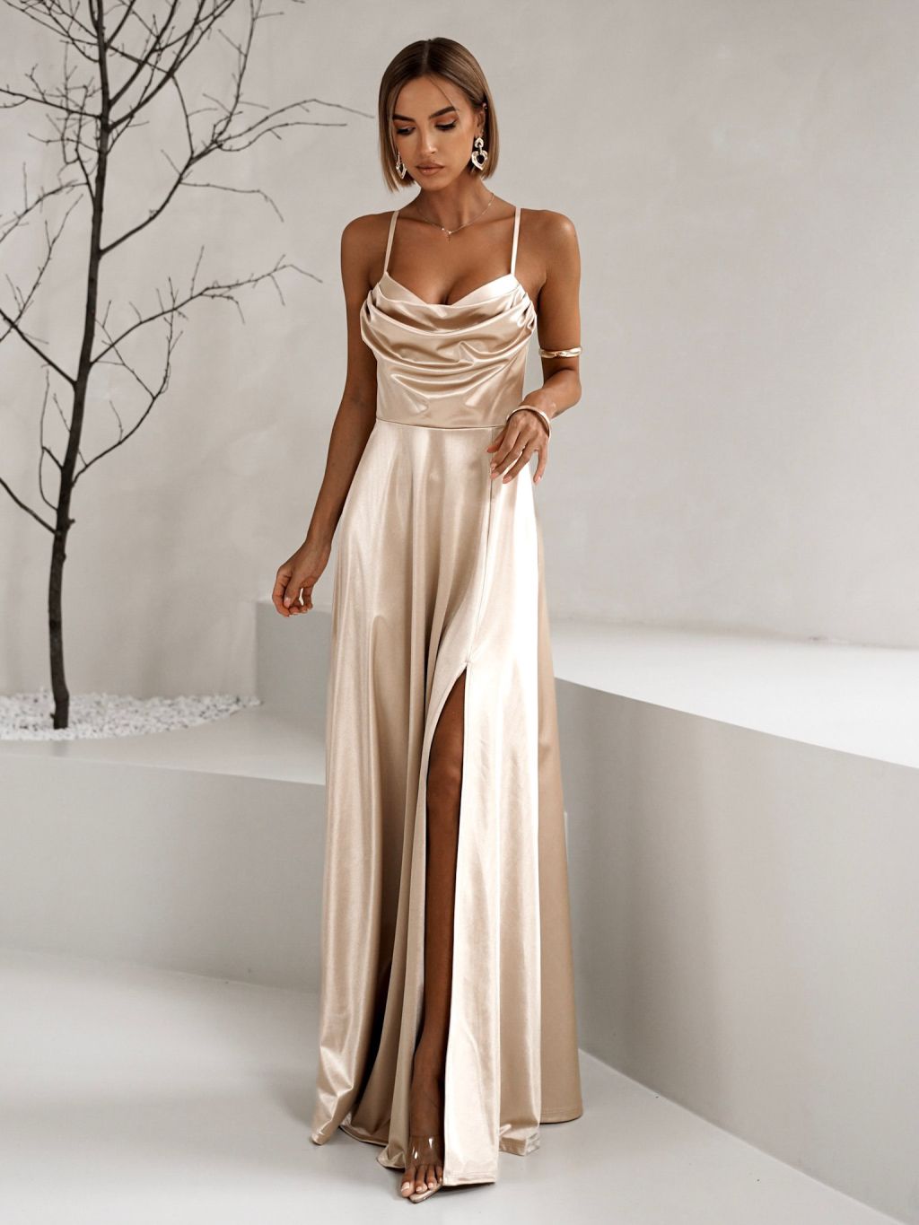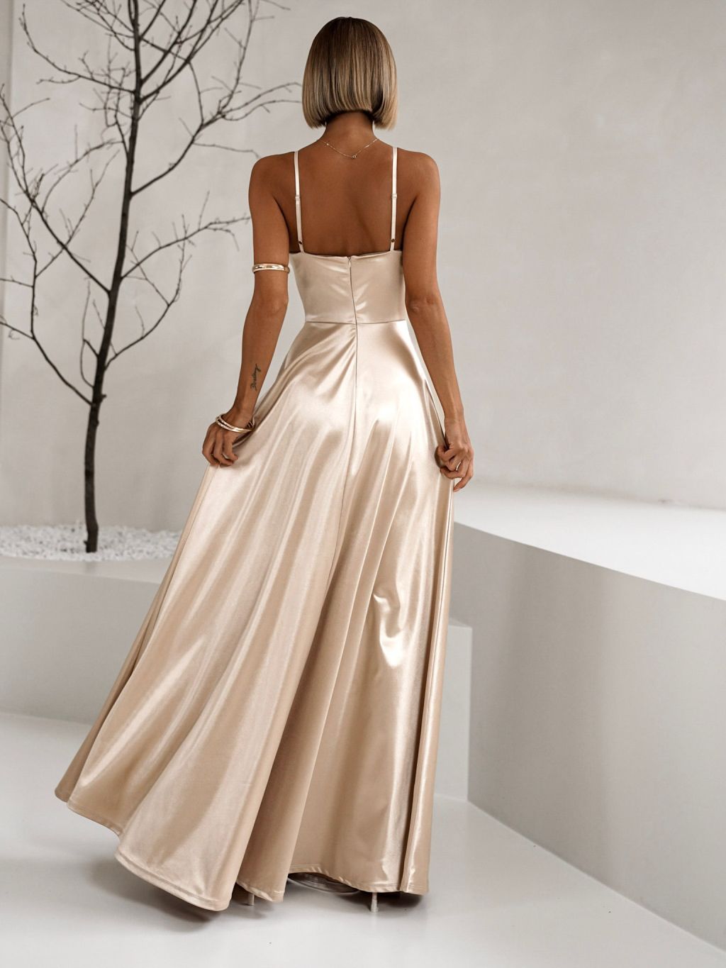 Zlaté saténové dlhé spoločenské šaty LUNOREX