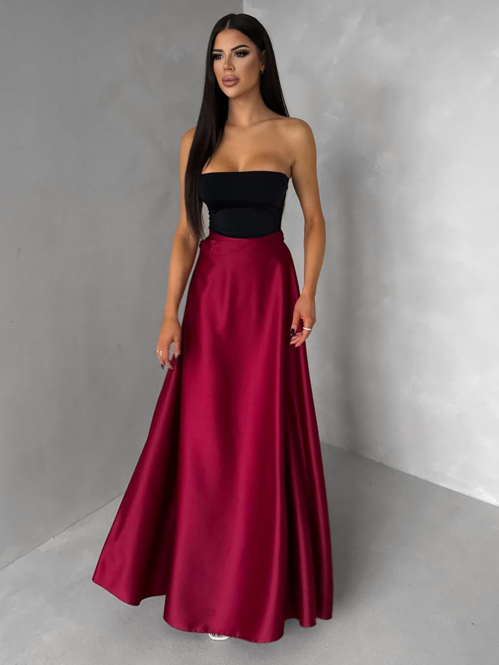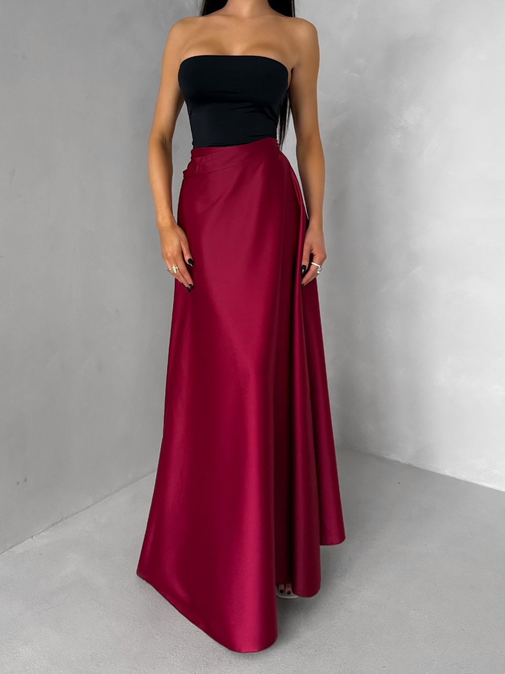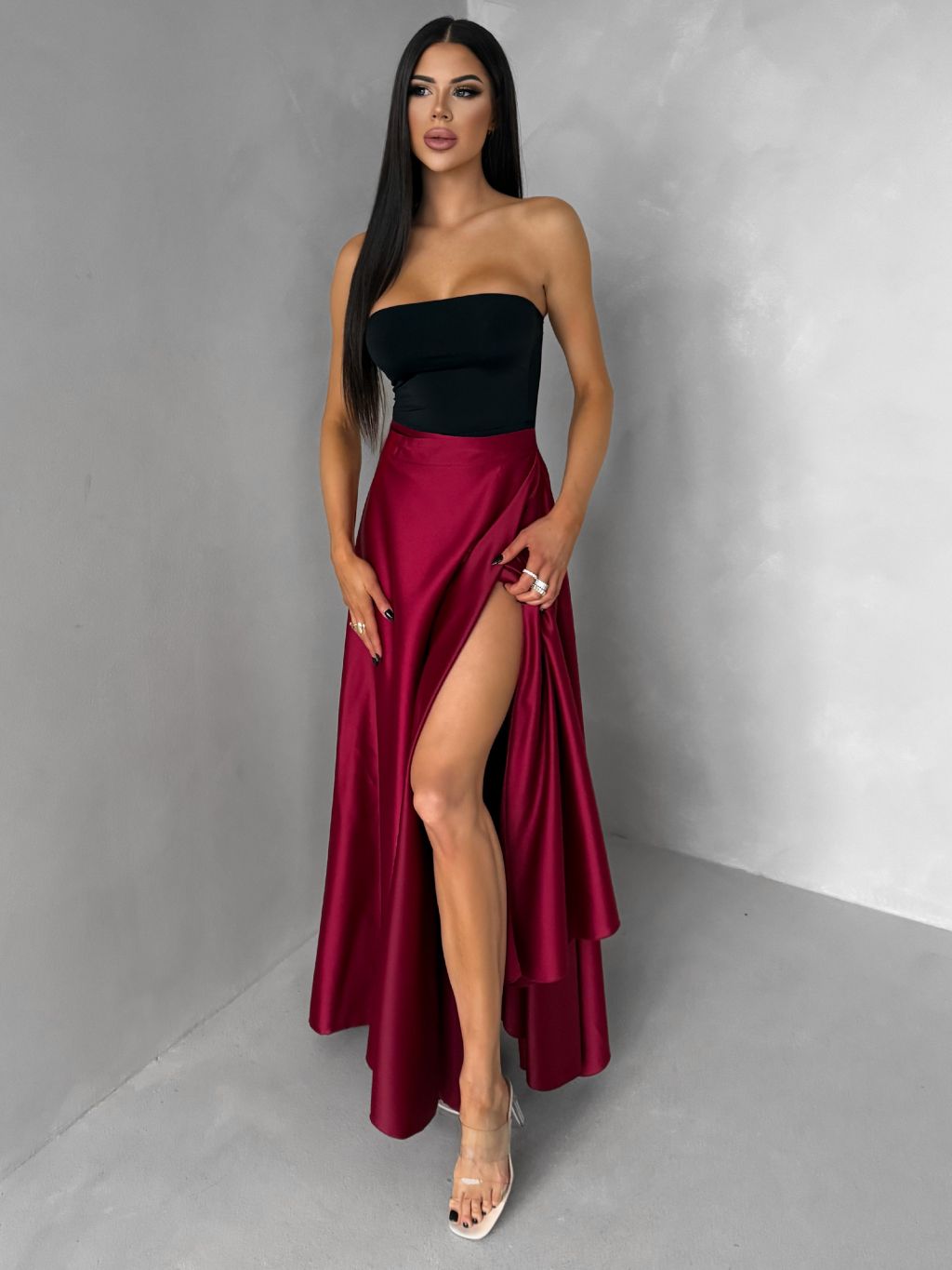 Bordová saténová zavinovacia dlhá sukňa DENISSE