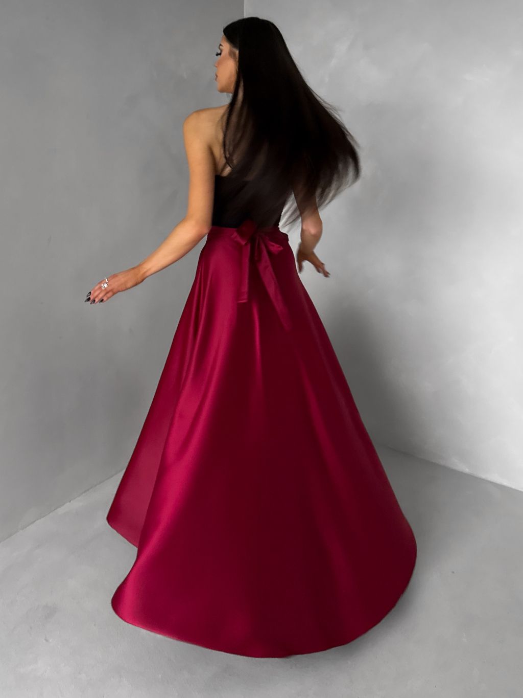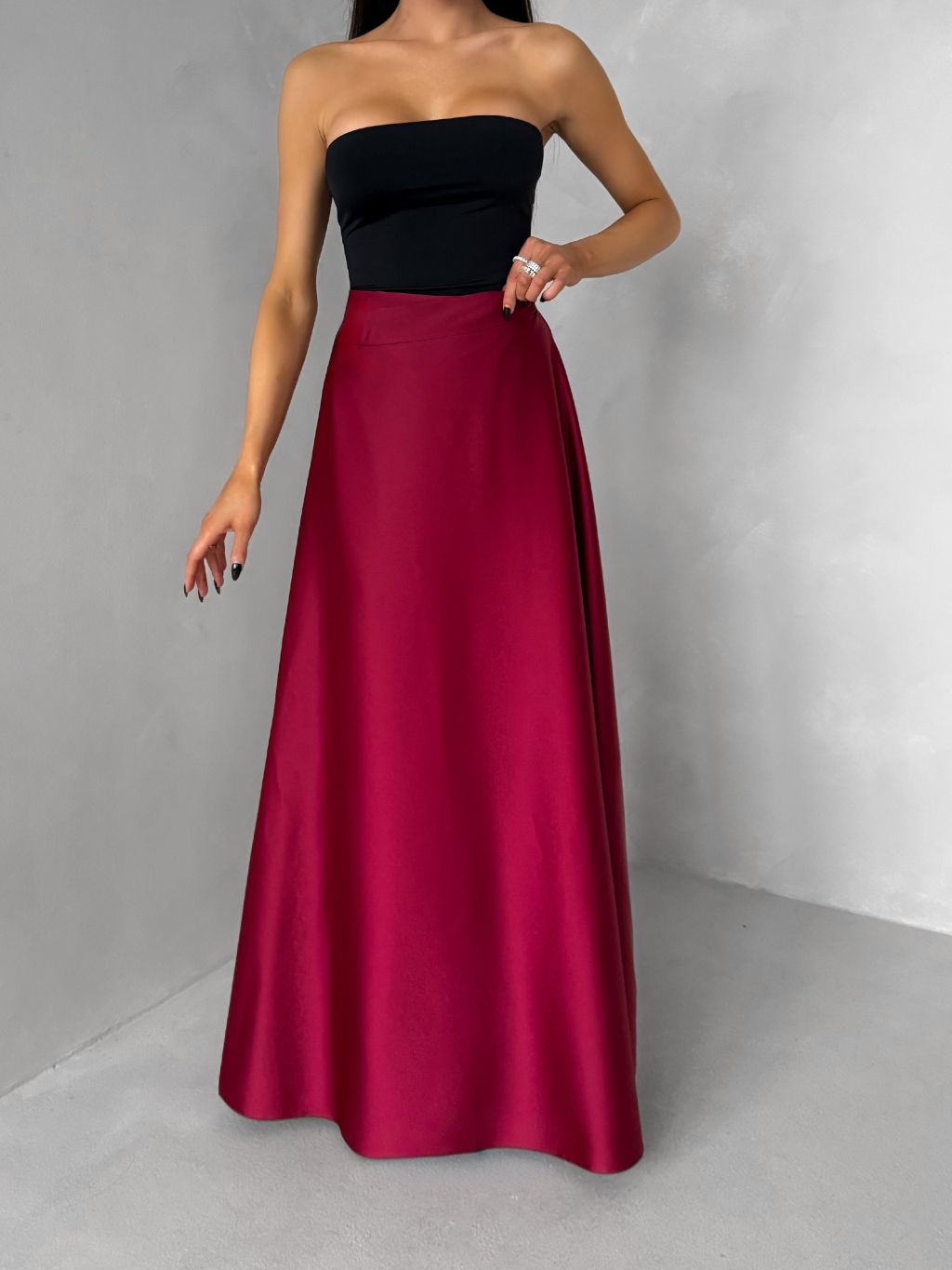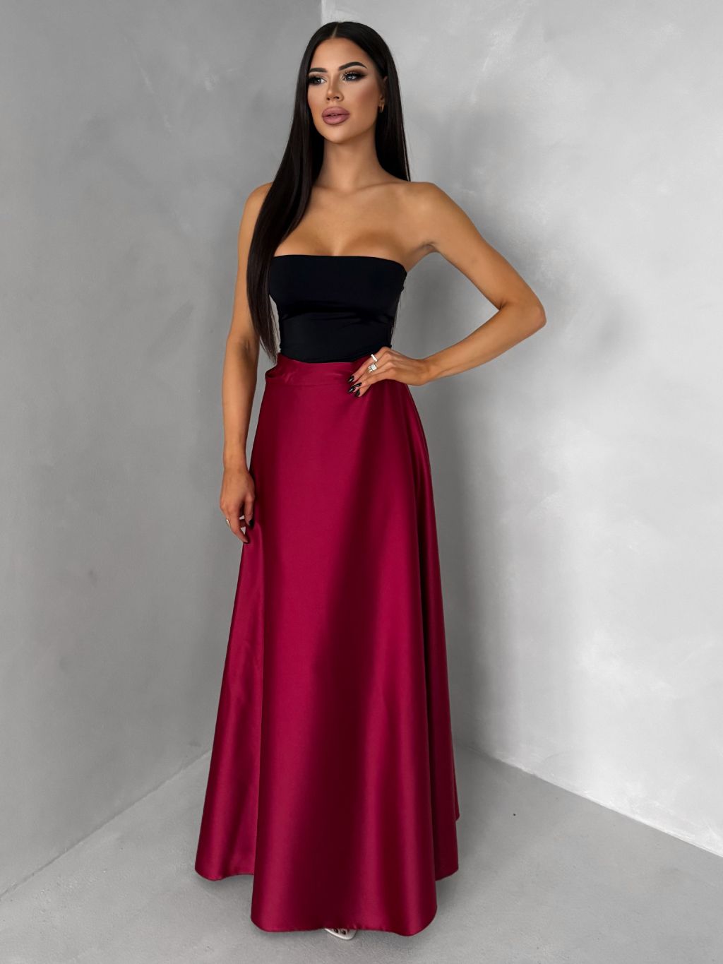 Bordová saténová zavinovacia dlhá sukňa DENISSE