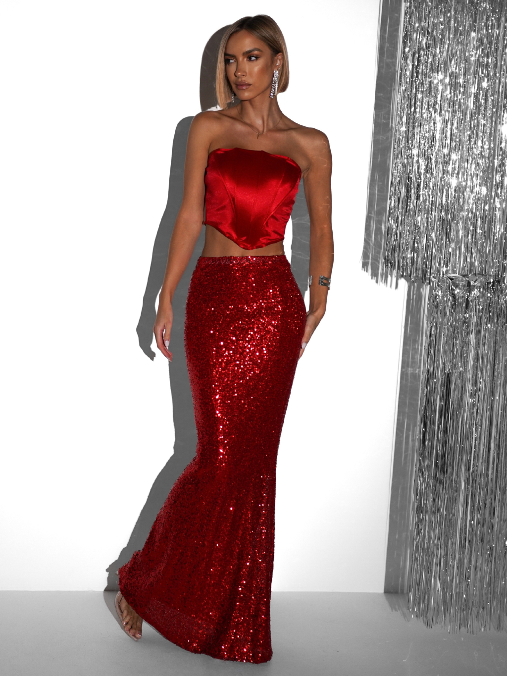 Červená flitrovaná dlhá sukňa ESTRELLA