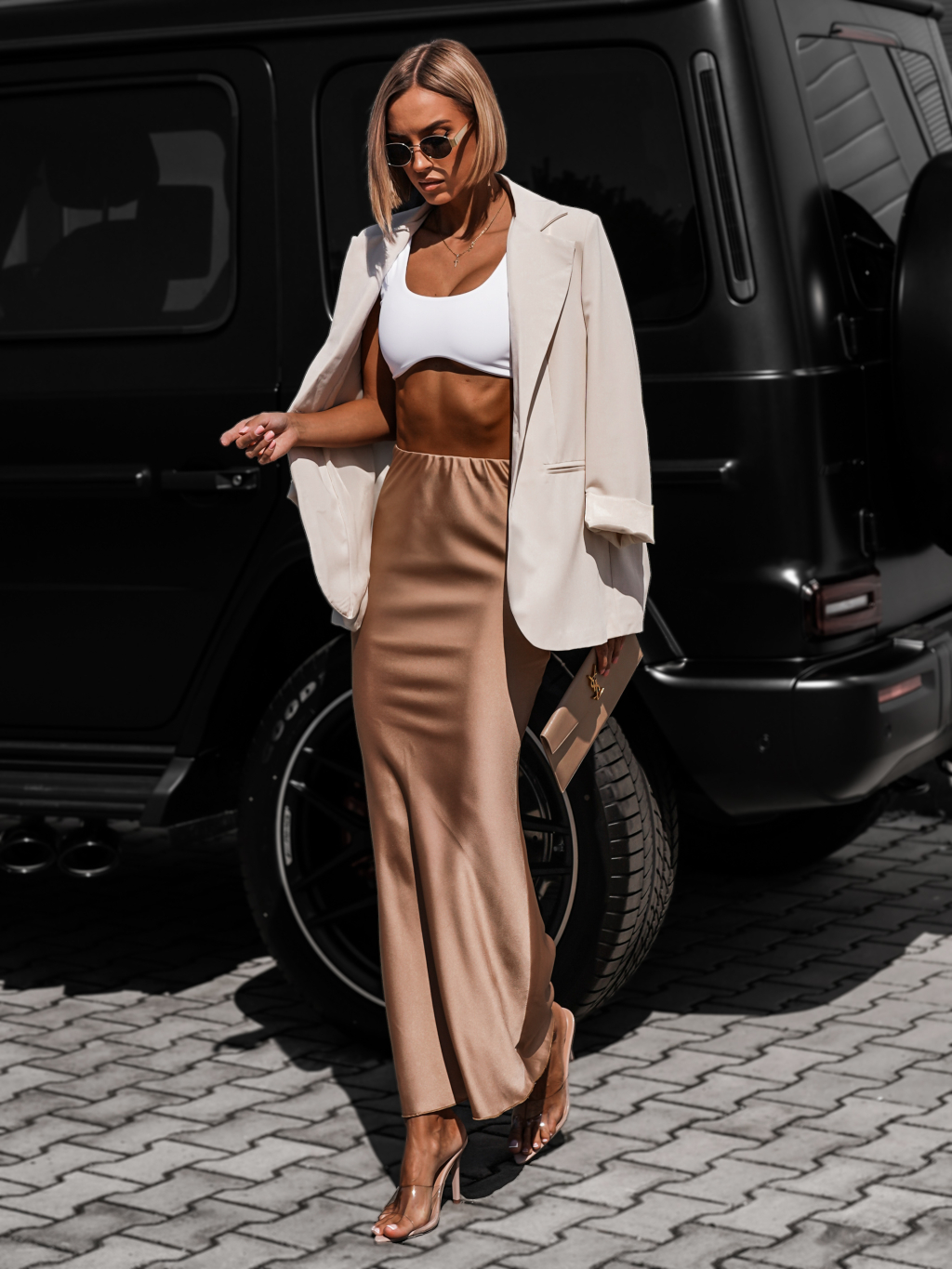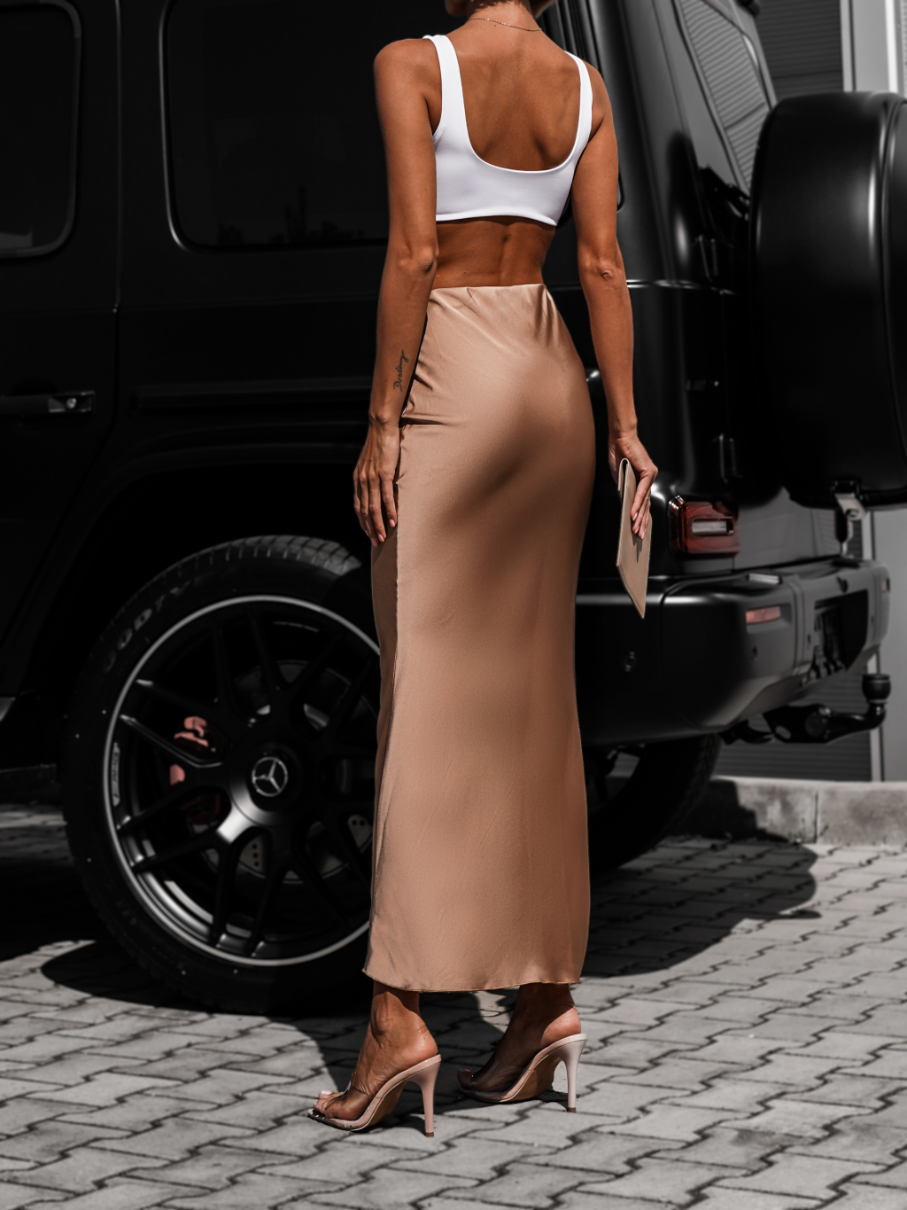 Hnedá dlhá saténová maxi sukňa REGENORY