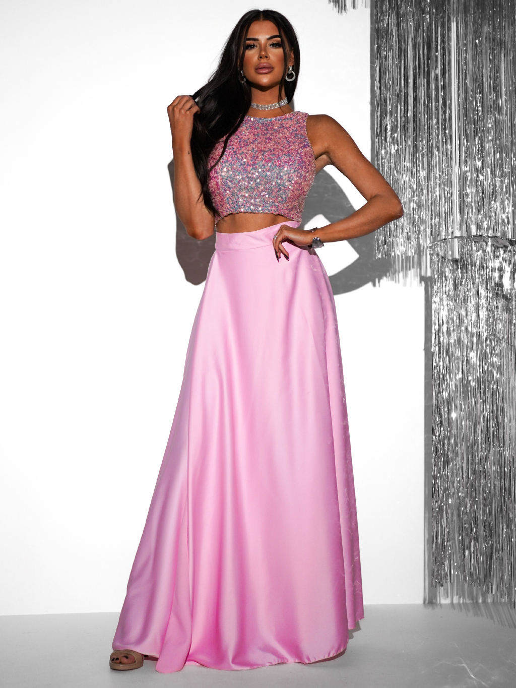 Ružová saténová dlhá zavinovacia sukňa DENISSE