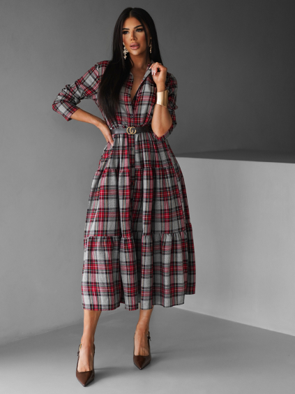 Vínové elegantné šaty WOMAN s dlhým rukávom
