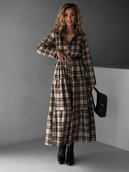 Hnedé elegantné áčkové šaty TEYVORA s opaskom