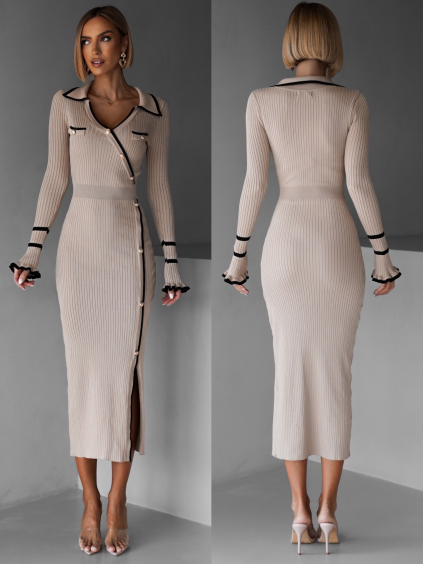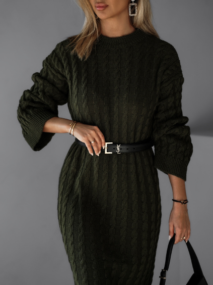 Kaki svetrové dlhé šaty FRIDOLINA