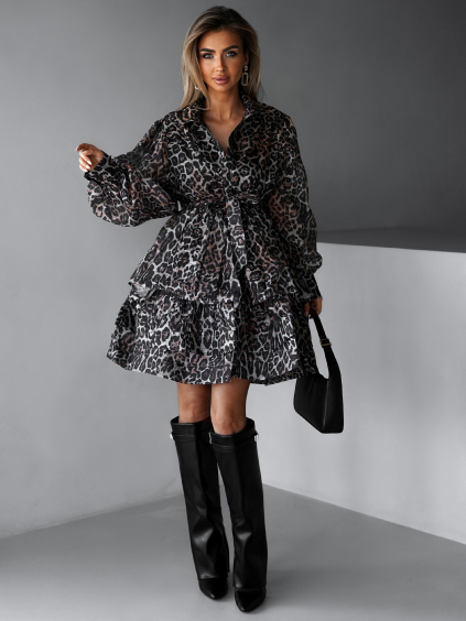 Leopardie volánové šaty TIZIANY s opaskom