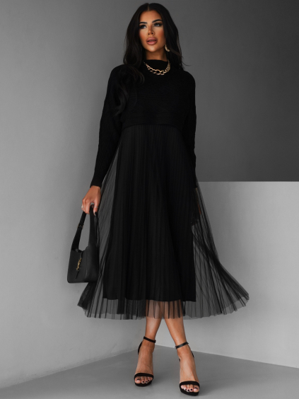 Čierne elegantné svetrové šaty HEARTY s dlhým rukávom