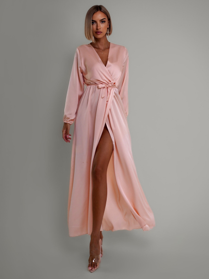 Svetloružové saténové šaty WOMAN s dlhým rukávom