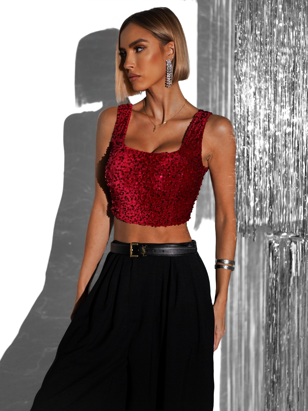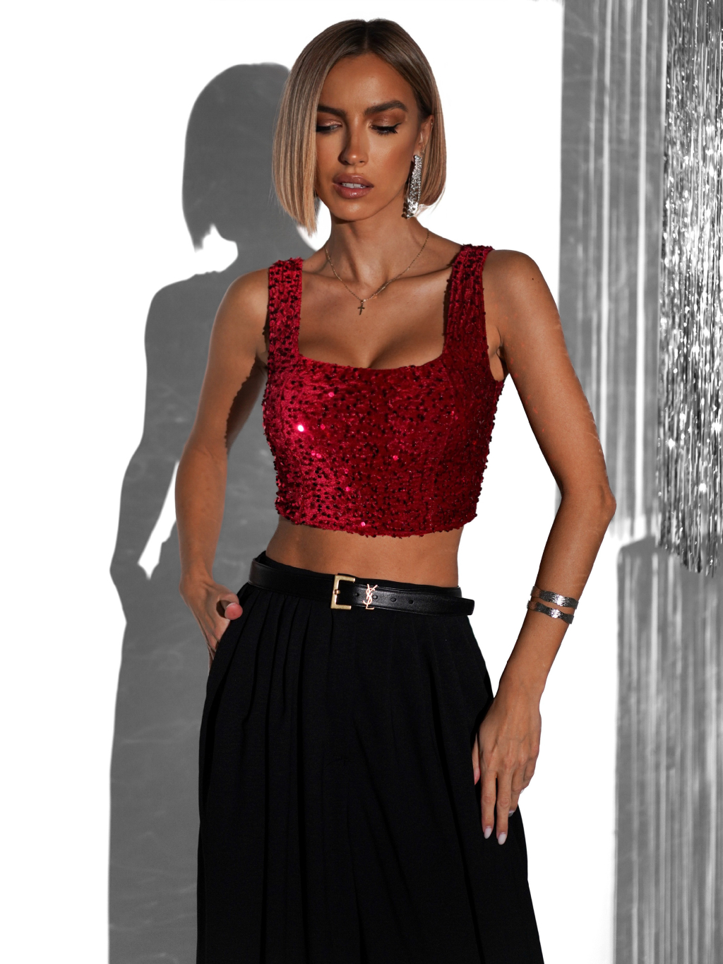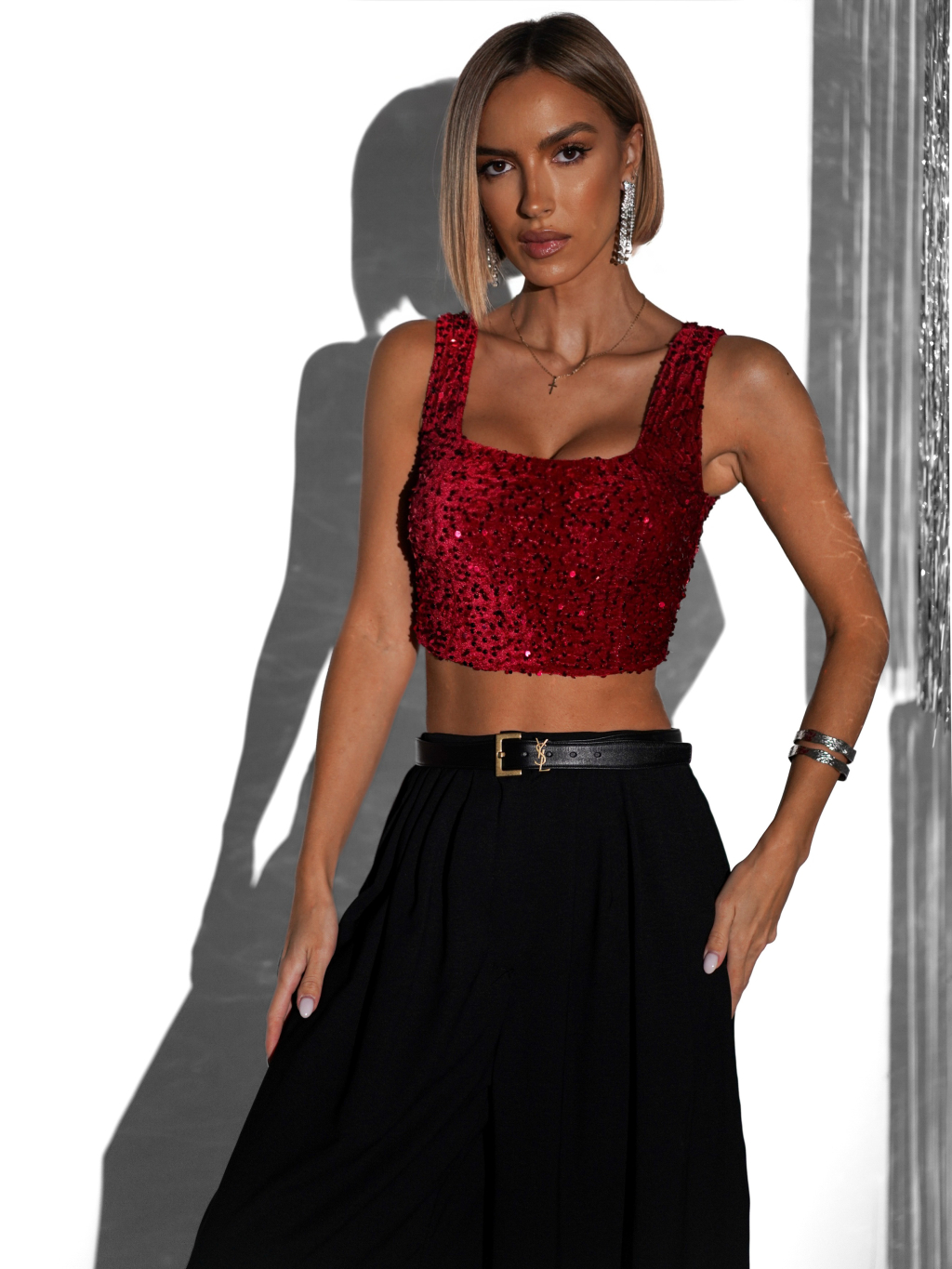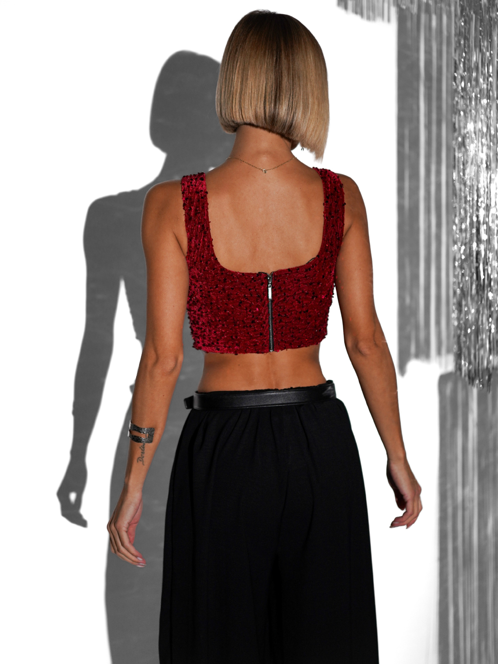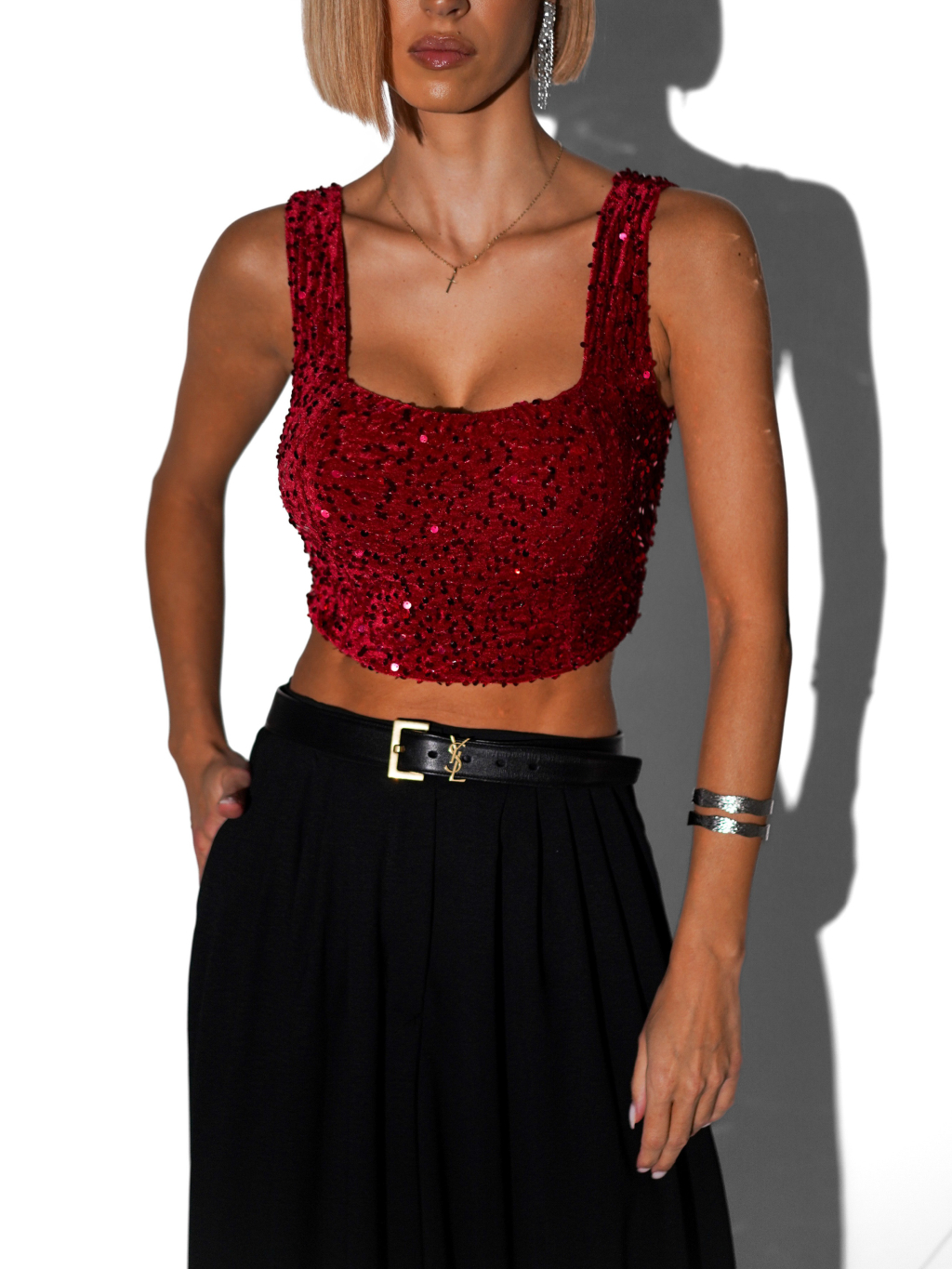 Červený flitrovaný crop top JARKKO