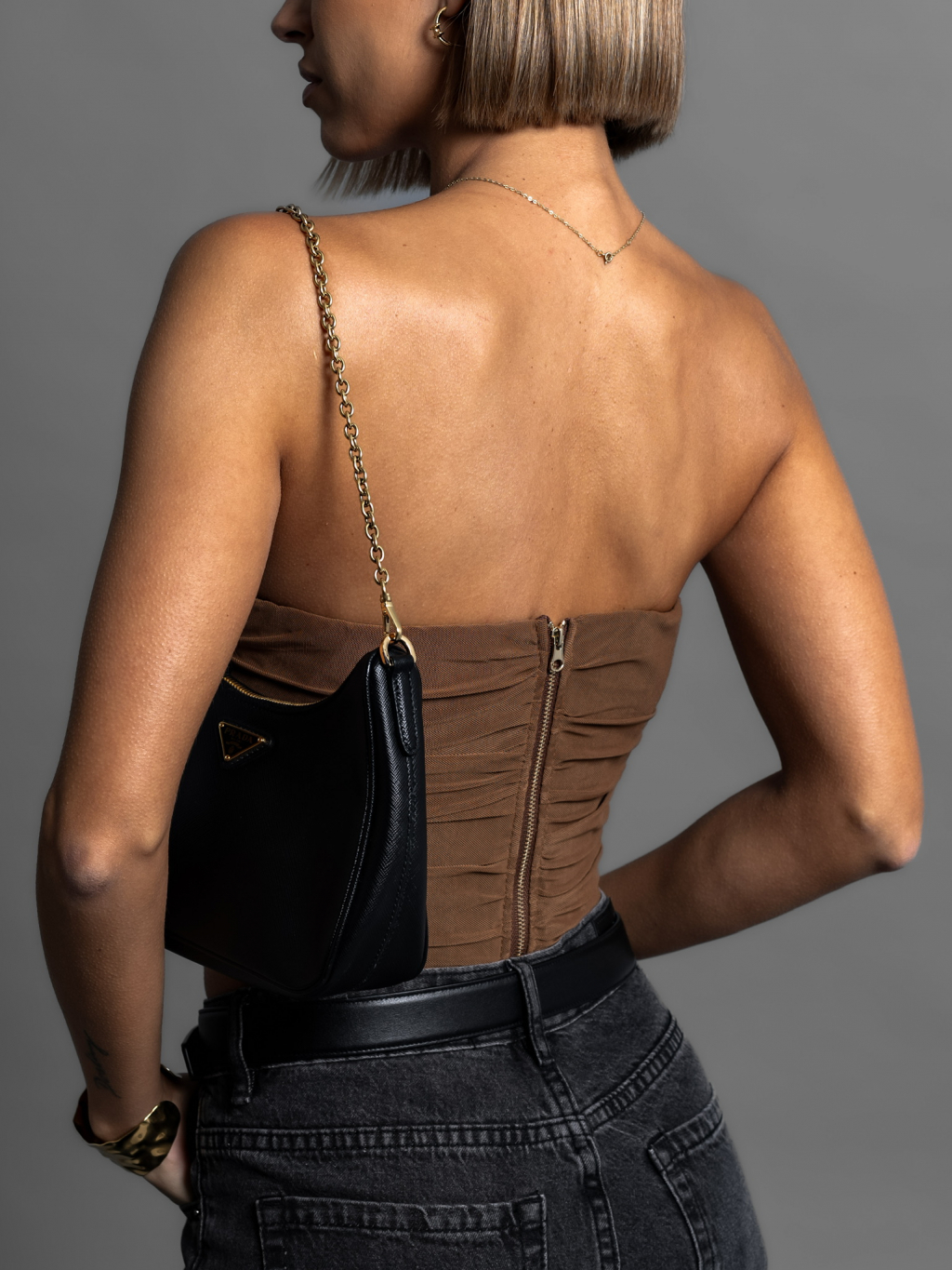 Hnedý sťahujúci korzet OGEJ so zipsom