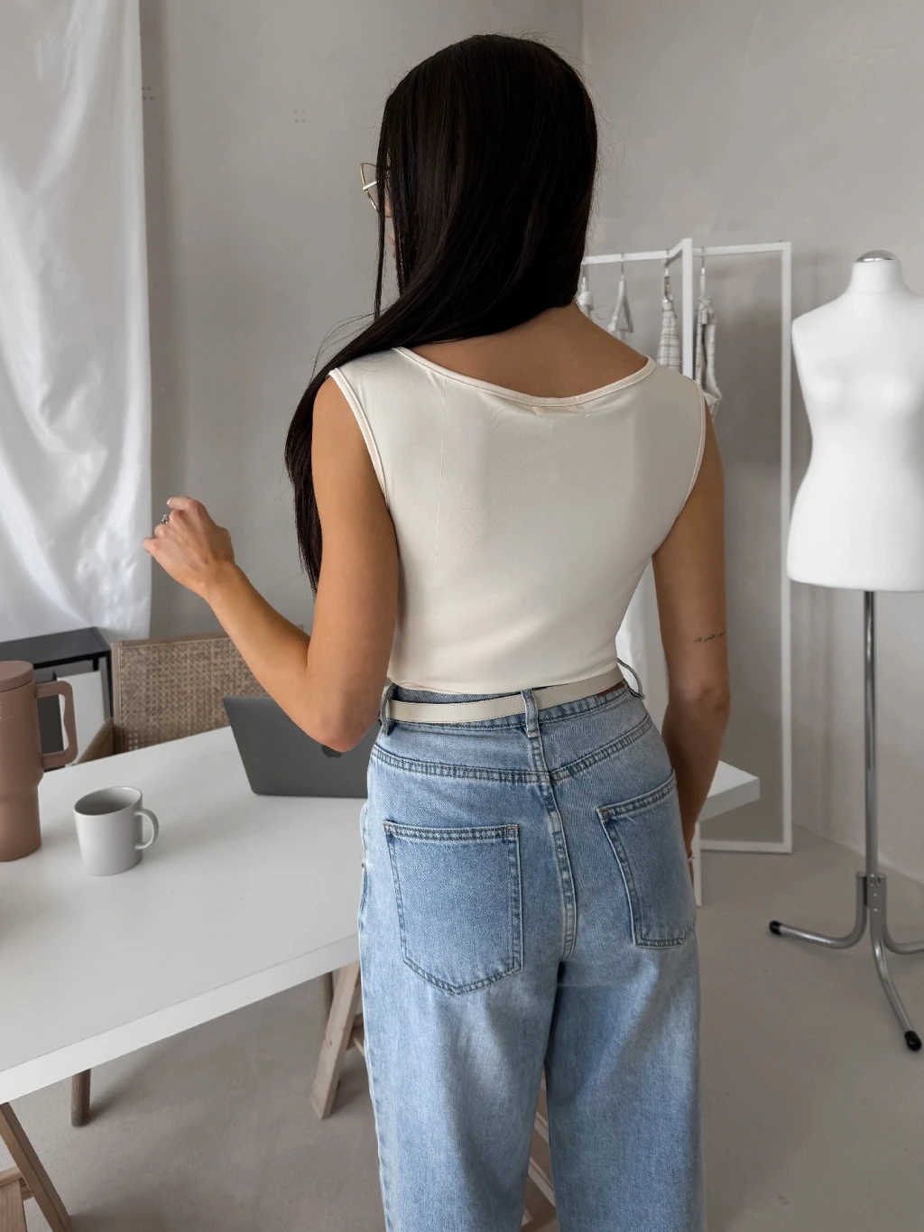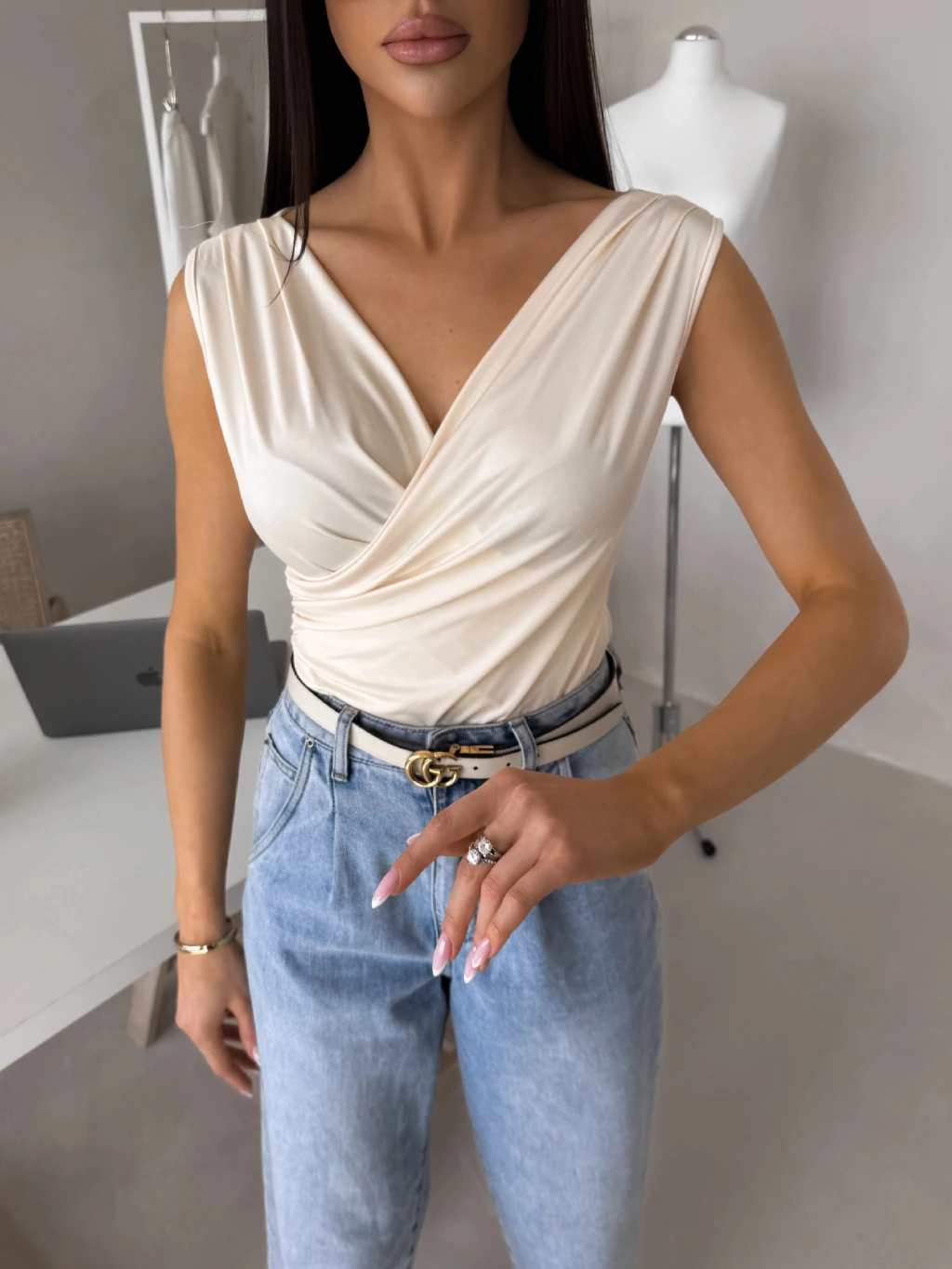 Krémové elegantné body NERTIS s výstrihom