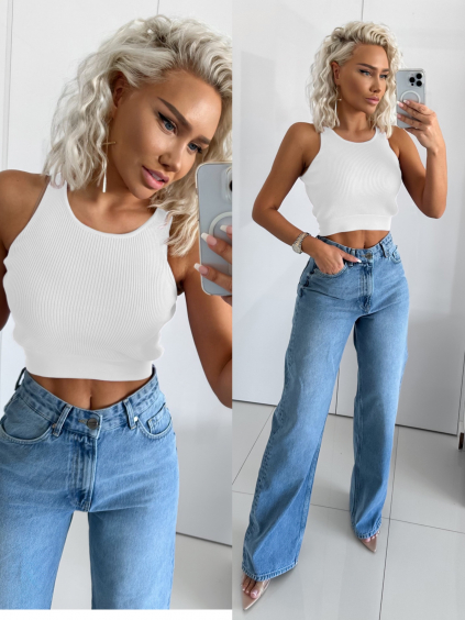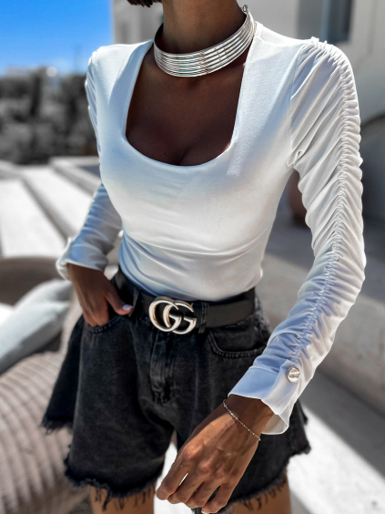 Biely mušelínový široký top VHAGAR s dlhým rukávom