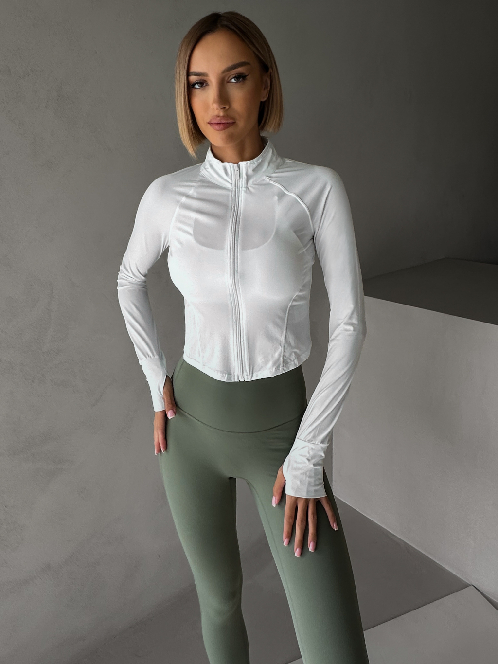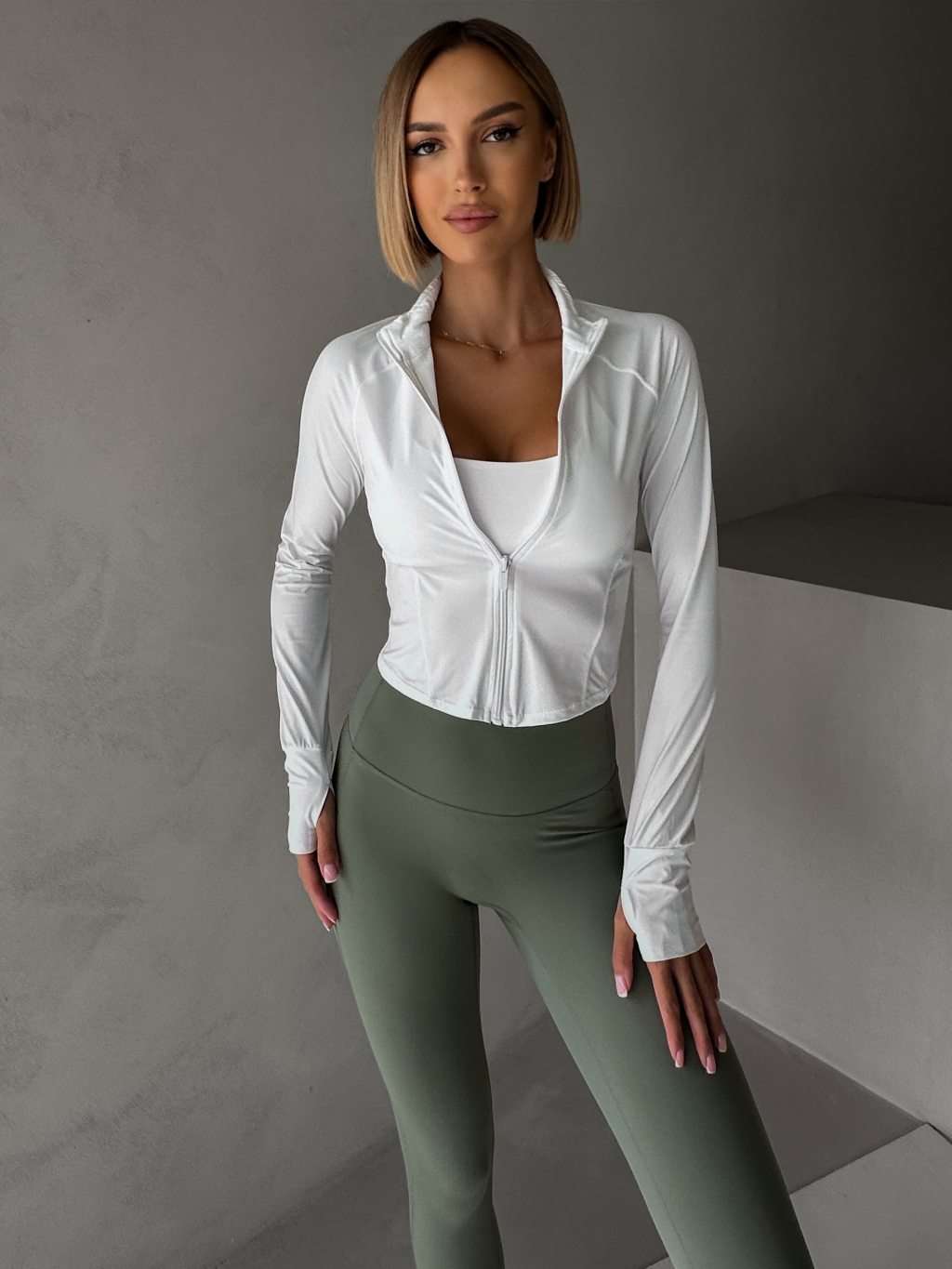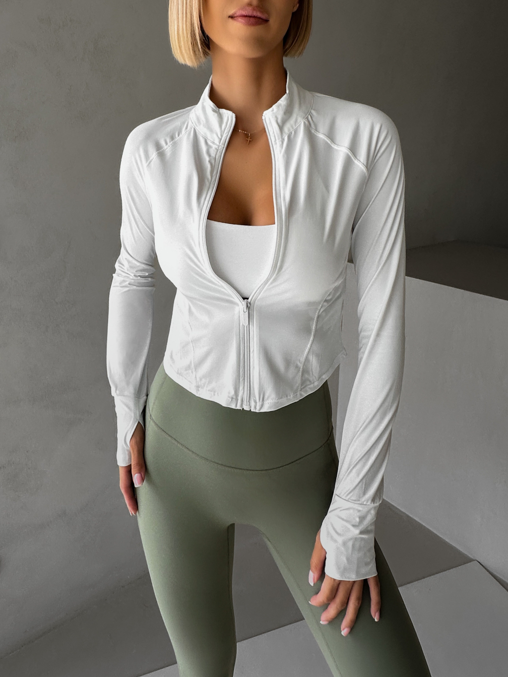 Biela športová mikina OMIREY na zips