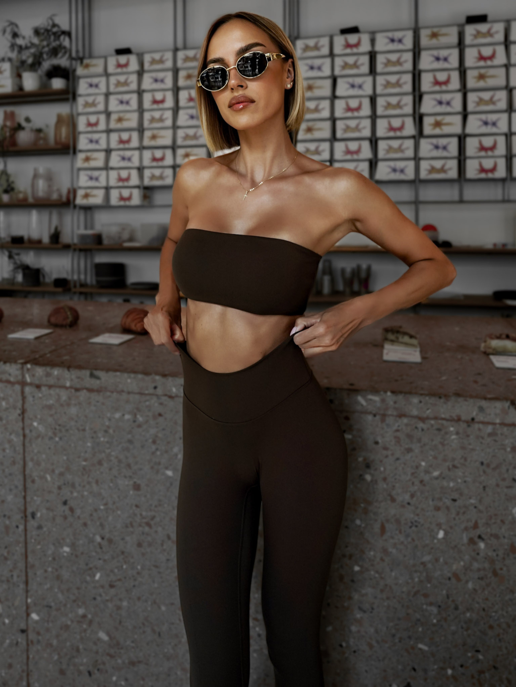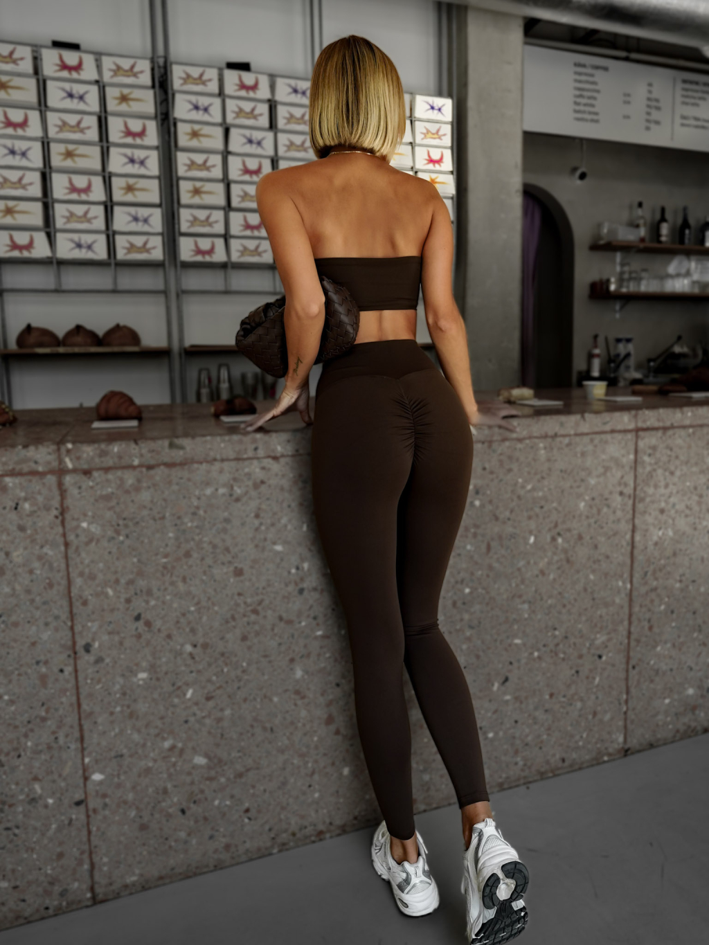 Hnedé push up športové legíny VRATAN s riasením