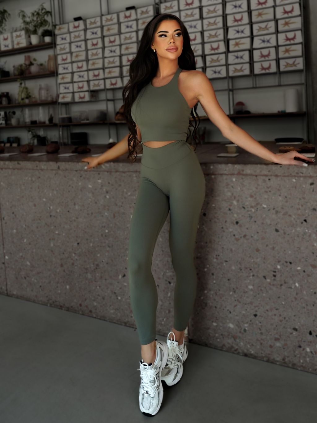 Kaki športové tvarujúce yoga legíny FENYRA