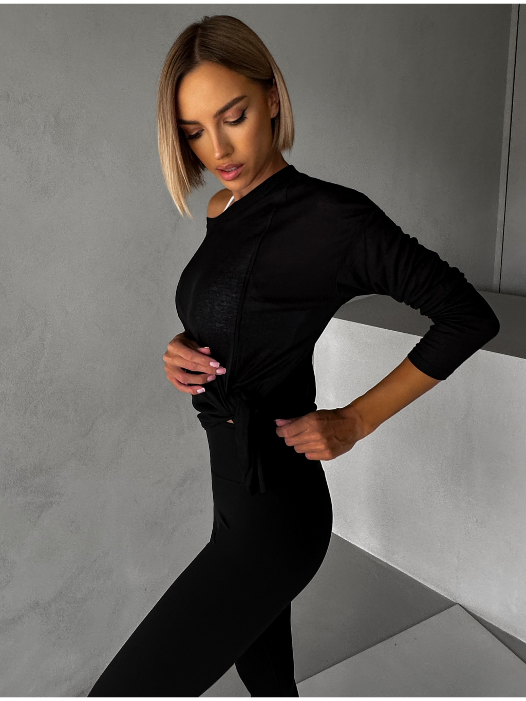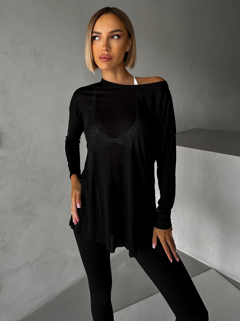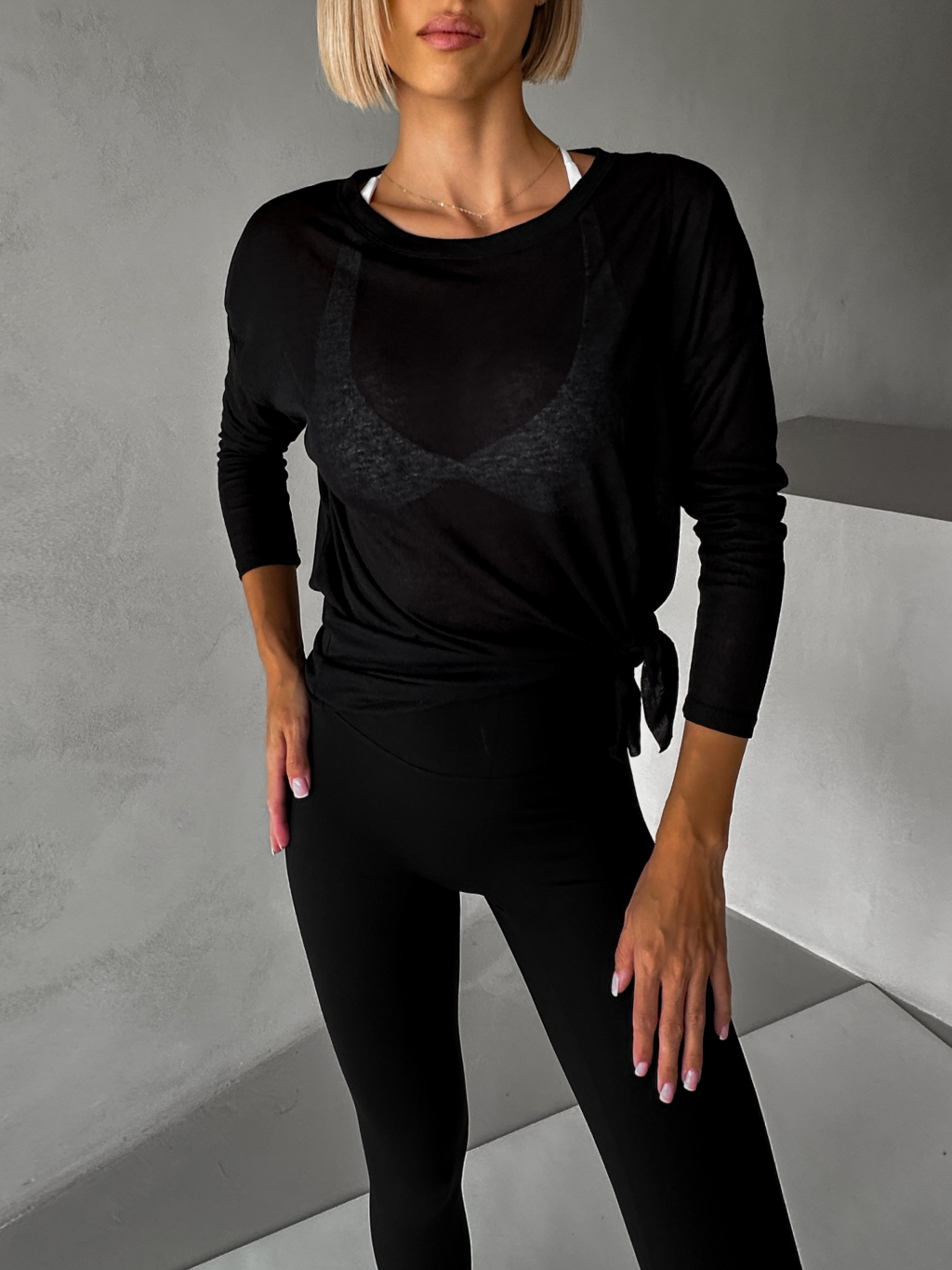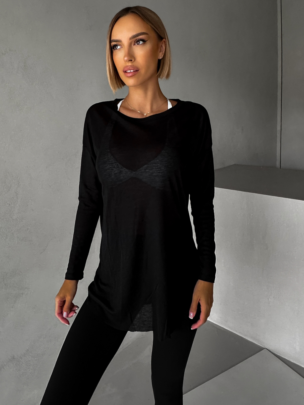 Čierne športové jóga tričko NAVIERA s rázporkom