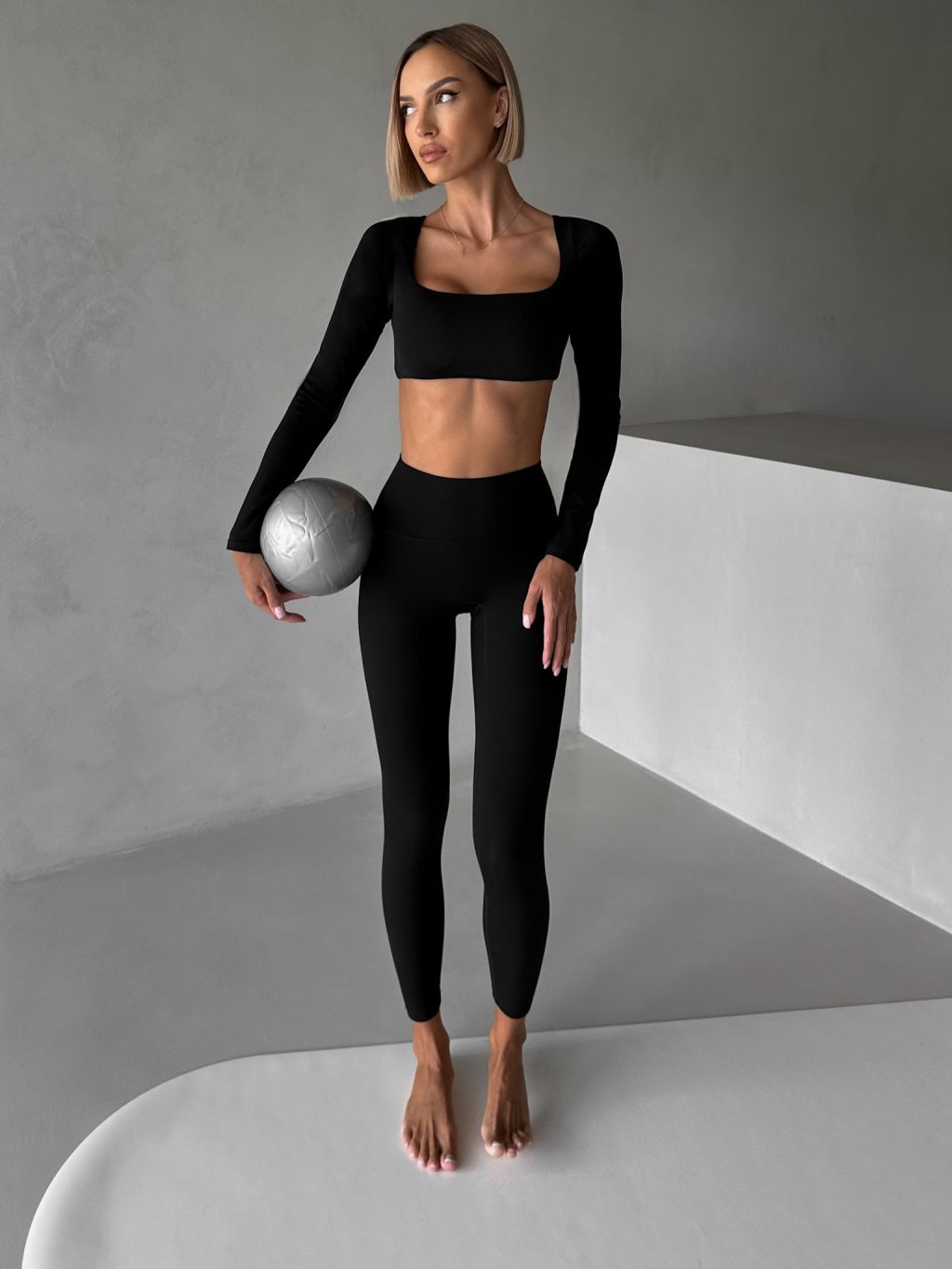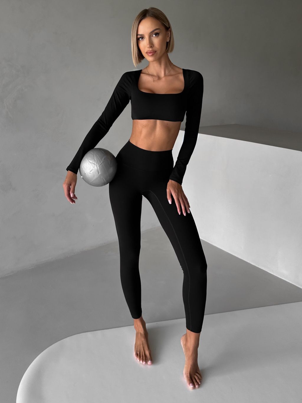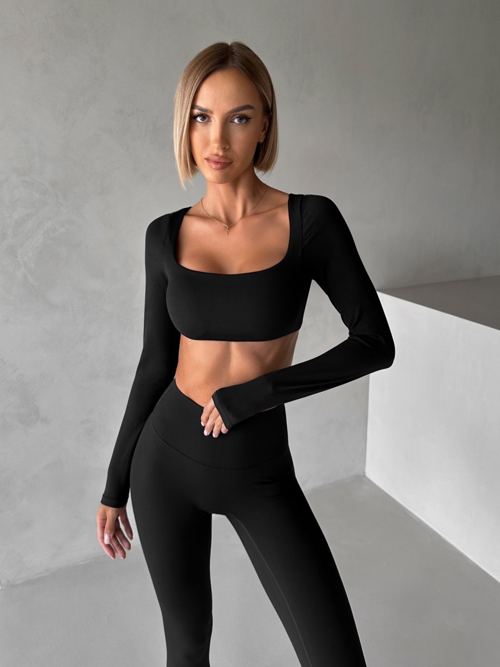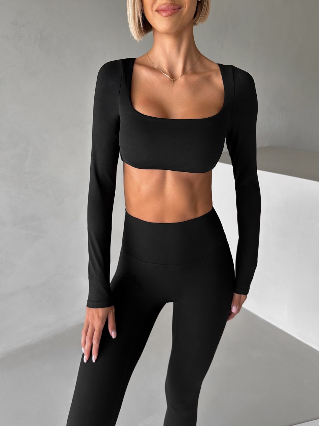 Čierny športový crop top JIMELA s dlhým rukávom