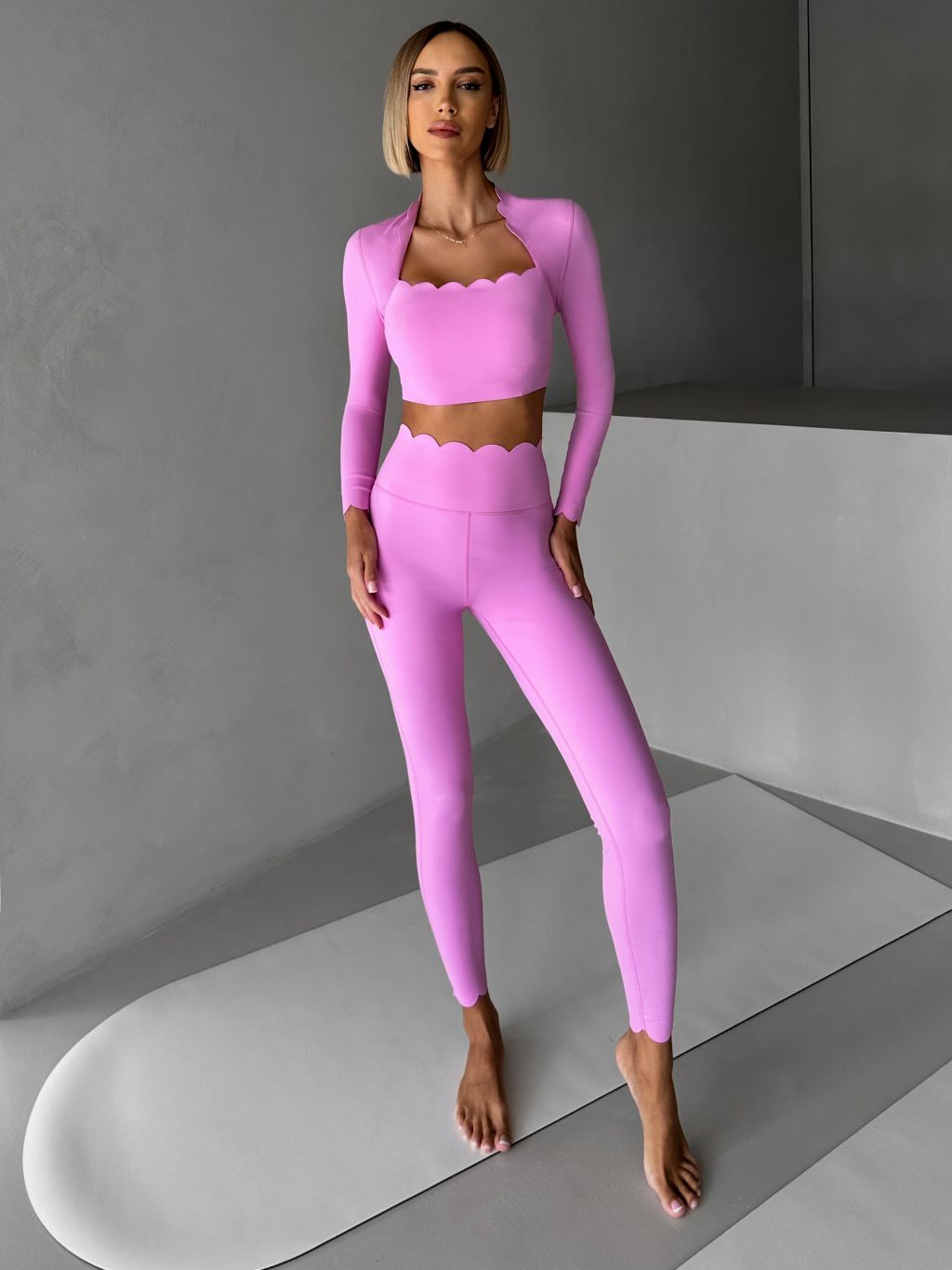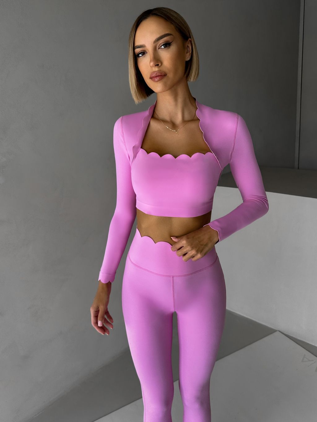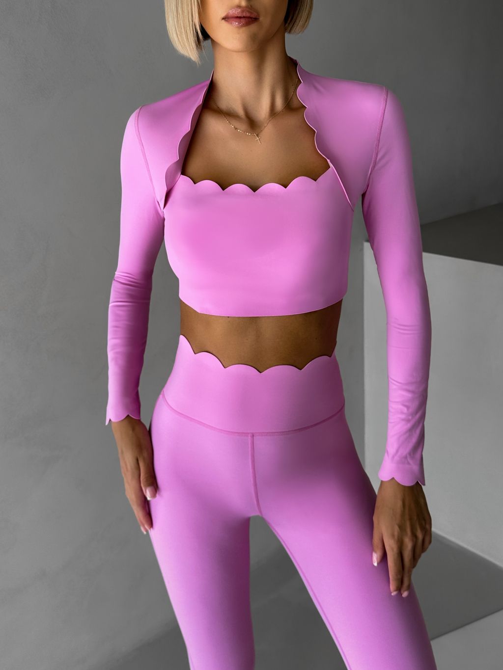 Ružový športový pilates top LUNIRA s dlhým rukávom