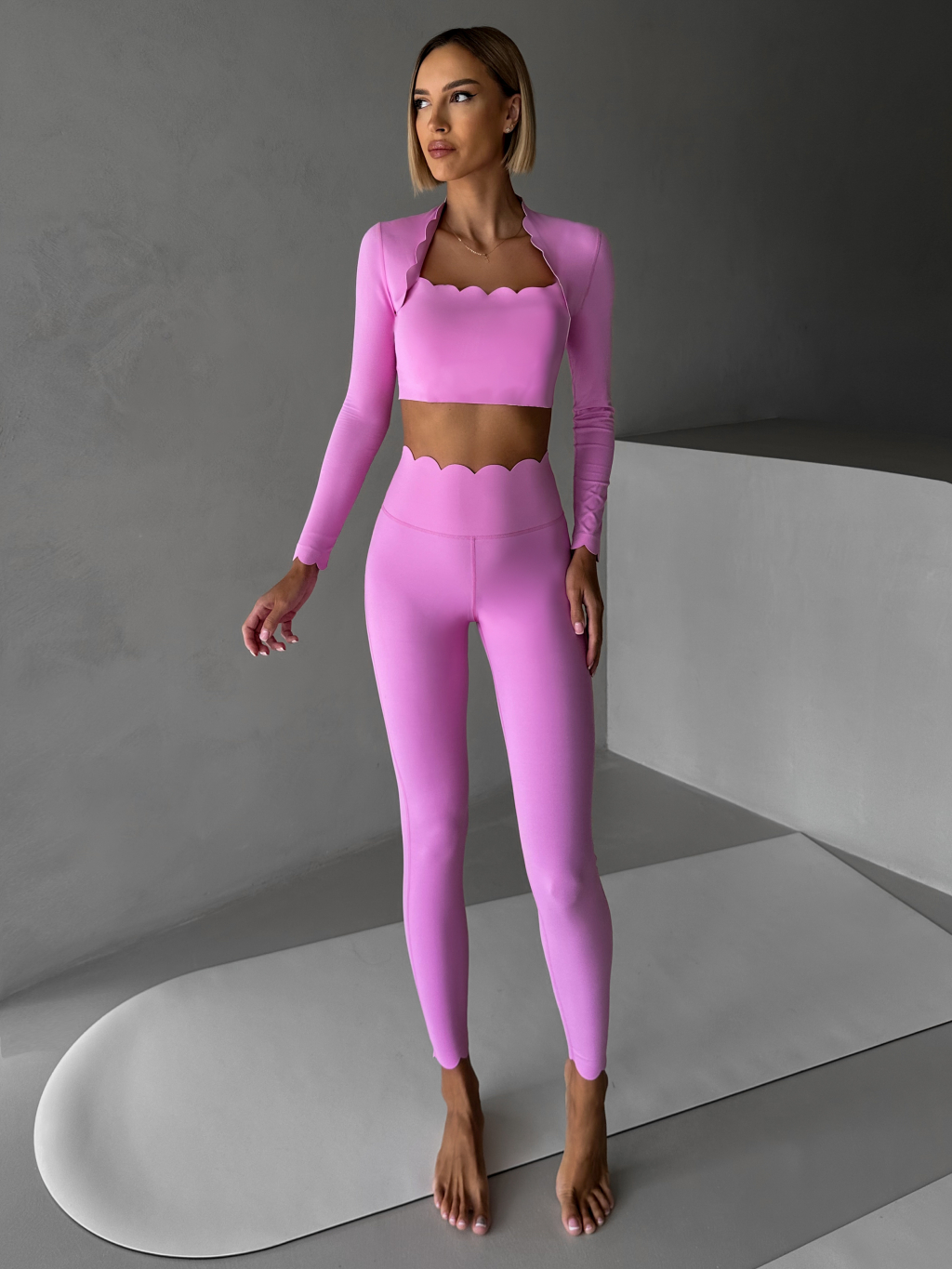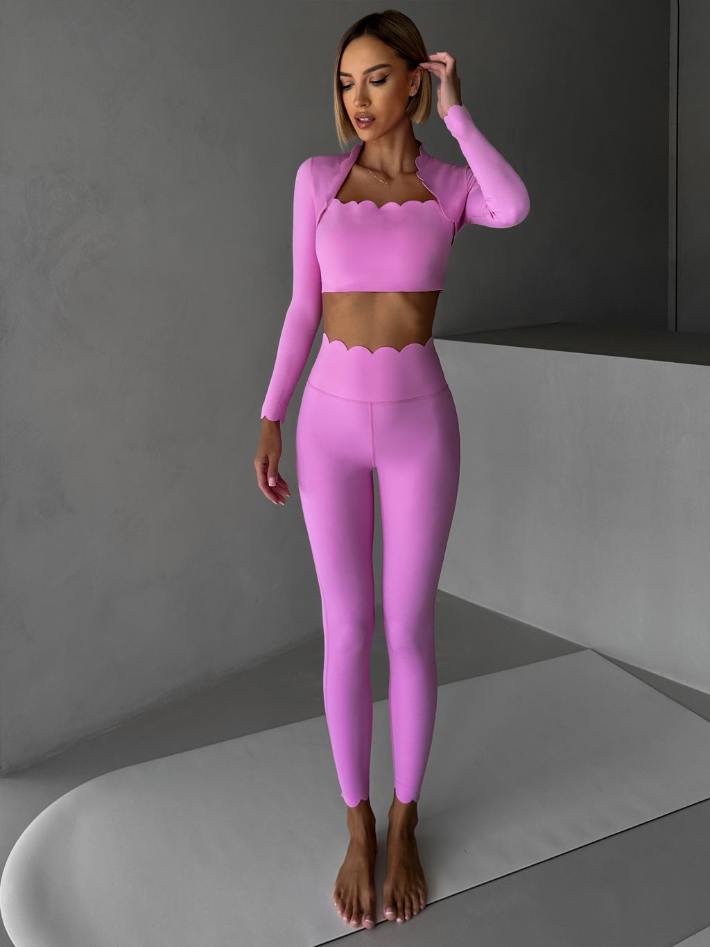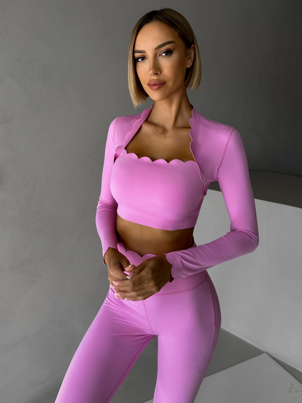 Ružový športový pilates top LUNIRA s dlhým rukávom