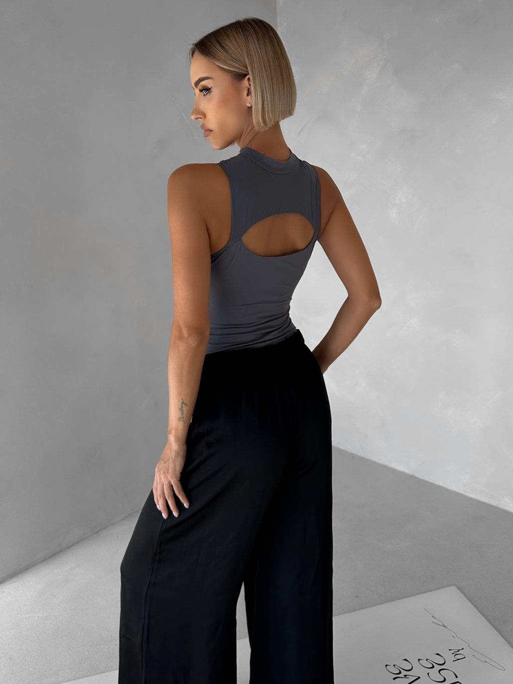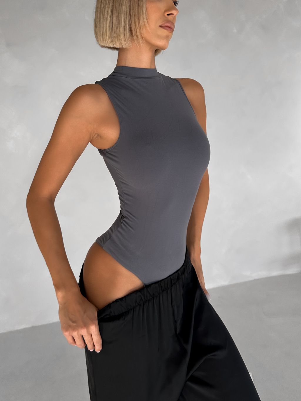 Šedé športové body SALEMEN s výstrihom