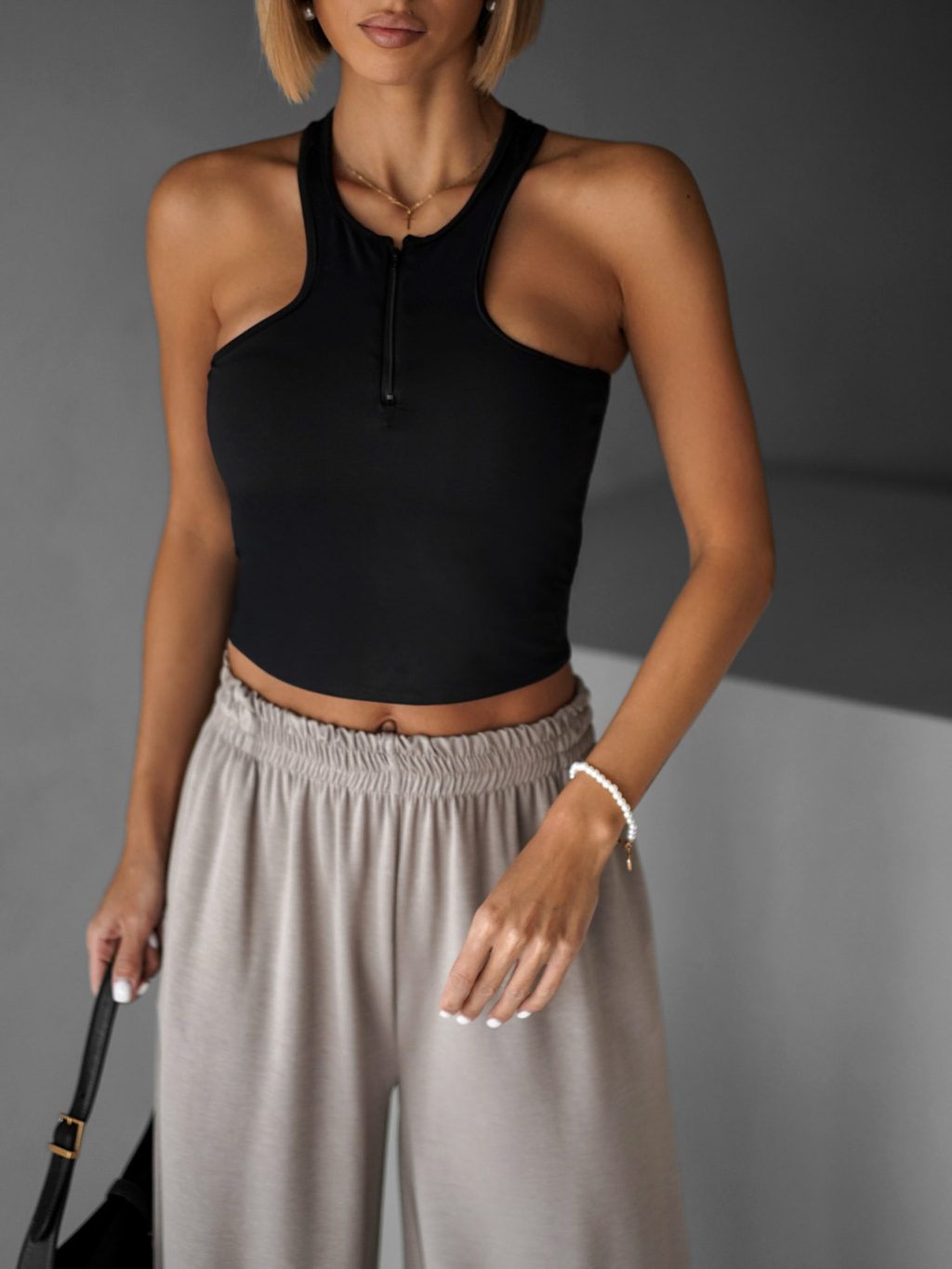 Čierny športový crop top ALADIN na zips