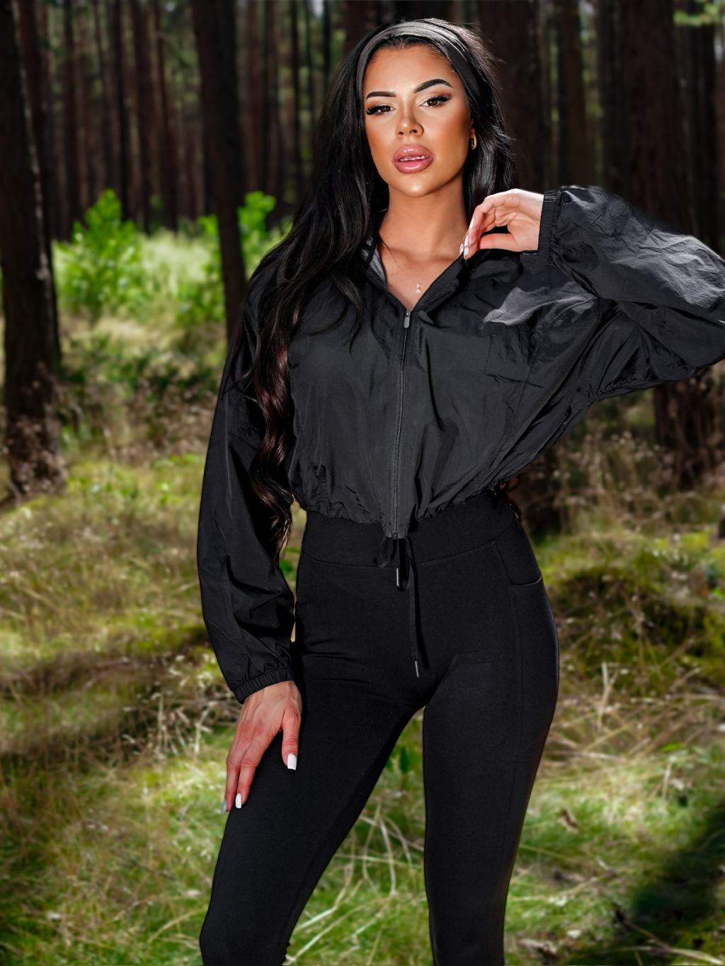 Čierna športová ľahká bunda NIRELA s kapucňou