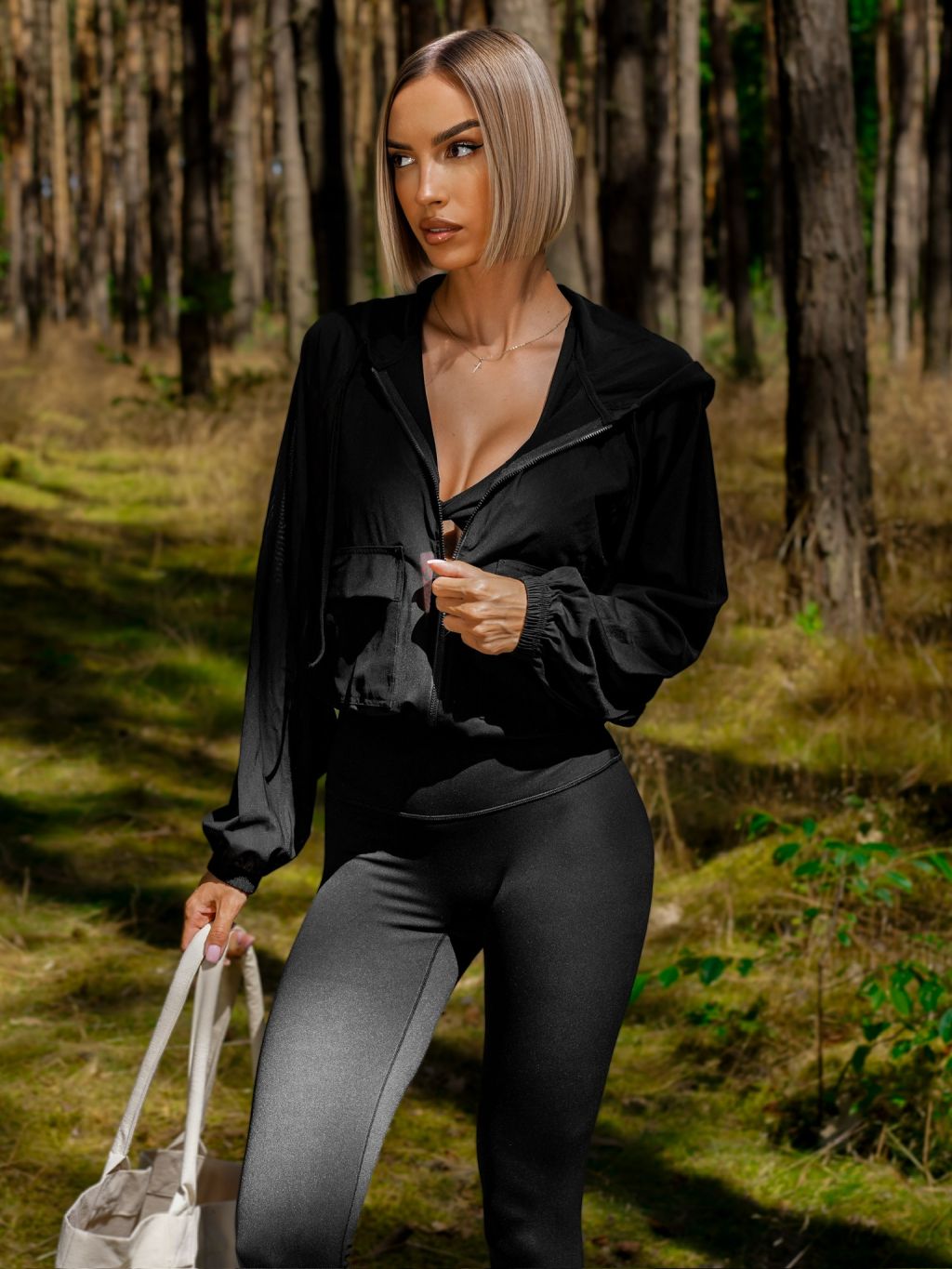 Čierna športová ľahká bunda NIRETA s kapucňou