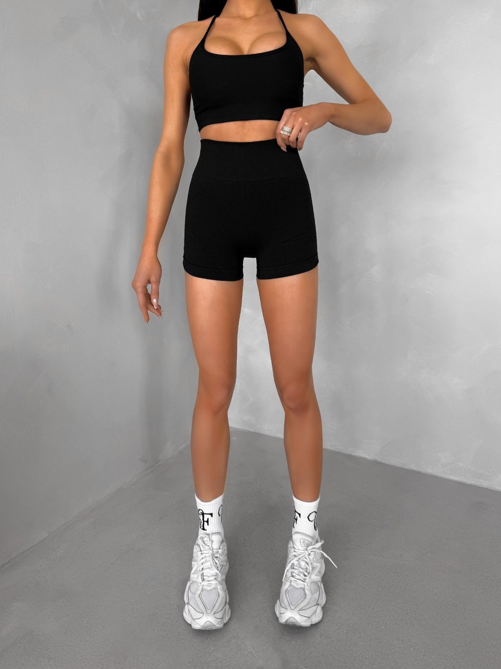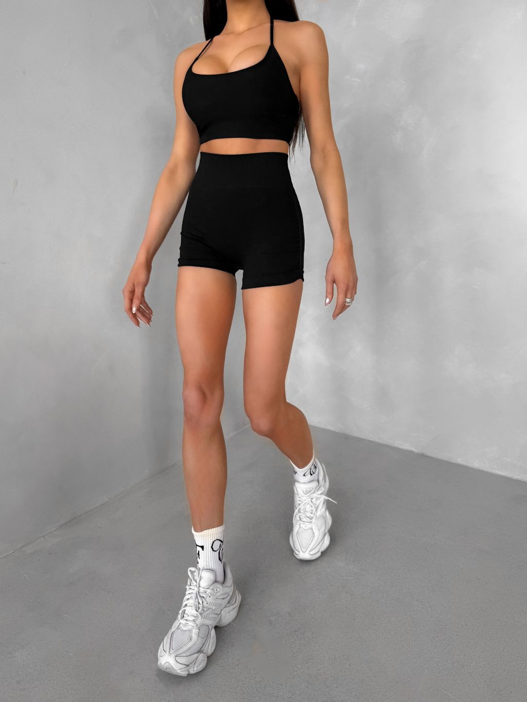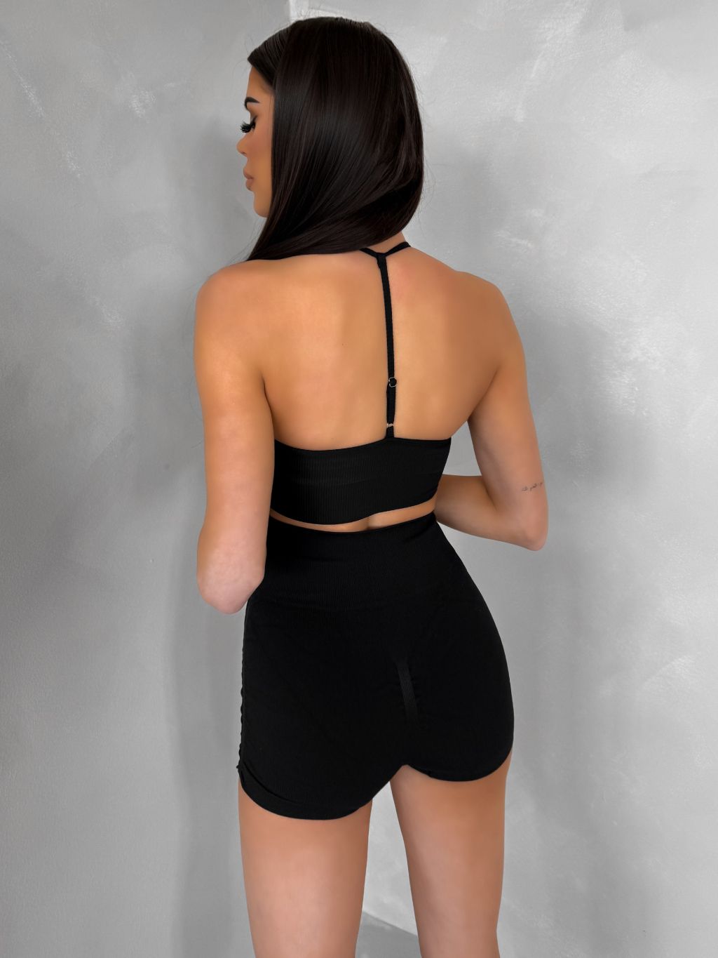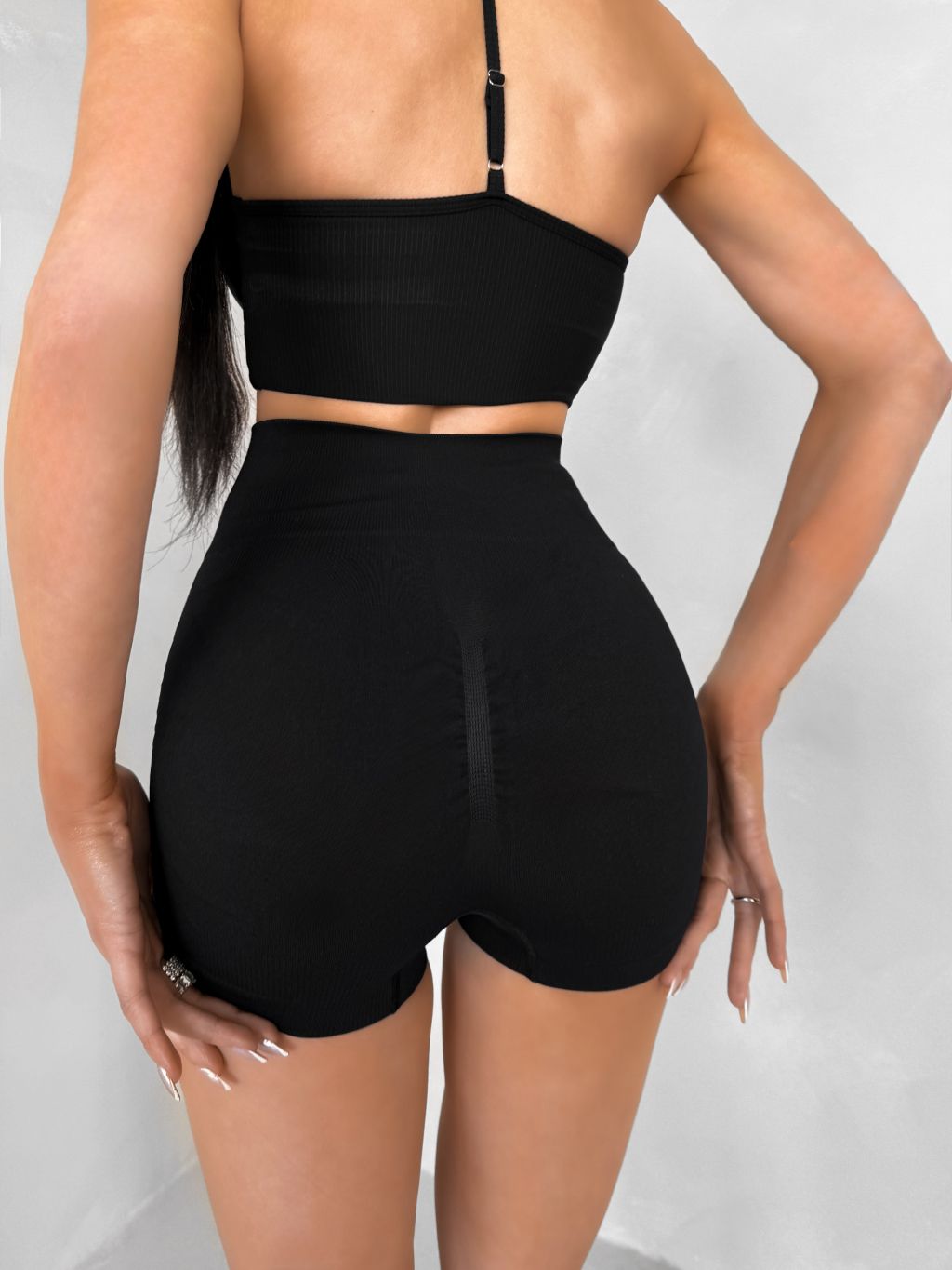 Čierne športové pusp-up mini kraťasy BELIRA s riasením