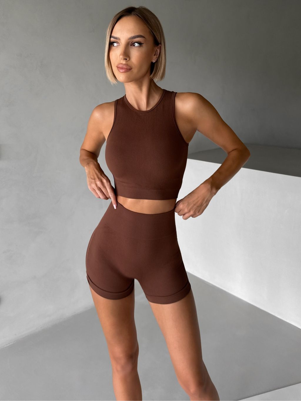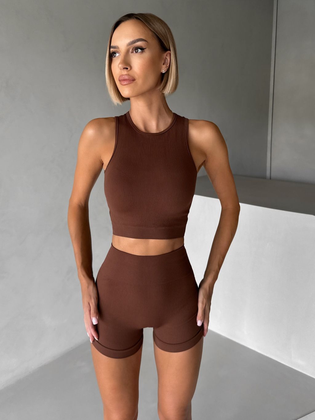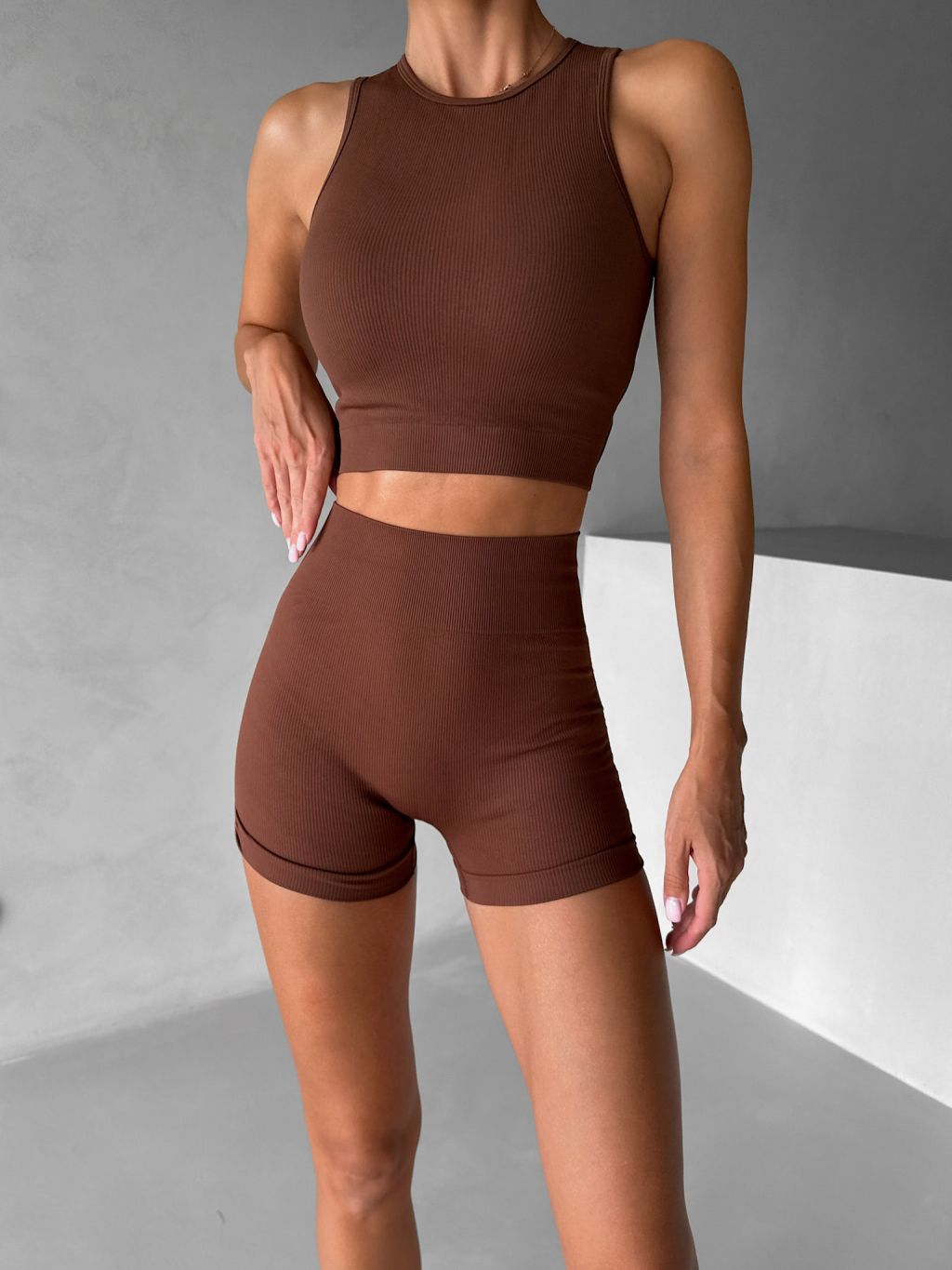 Hnedé športové pusp-up kraťasy BELIRA s riasením