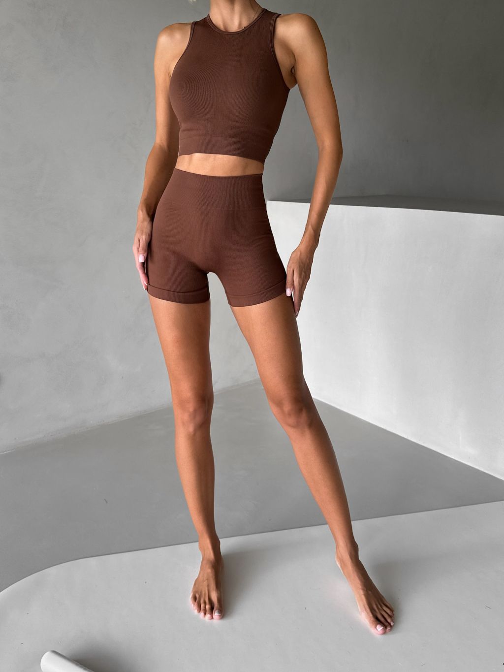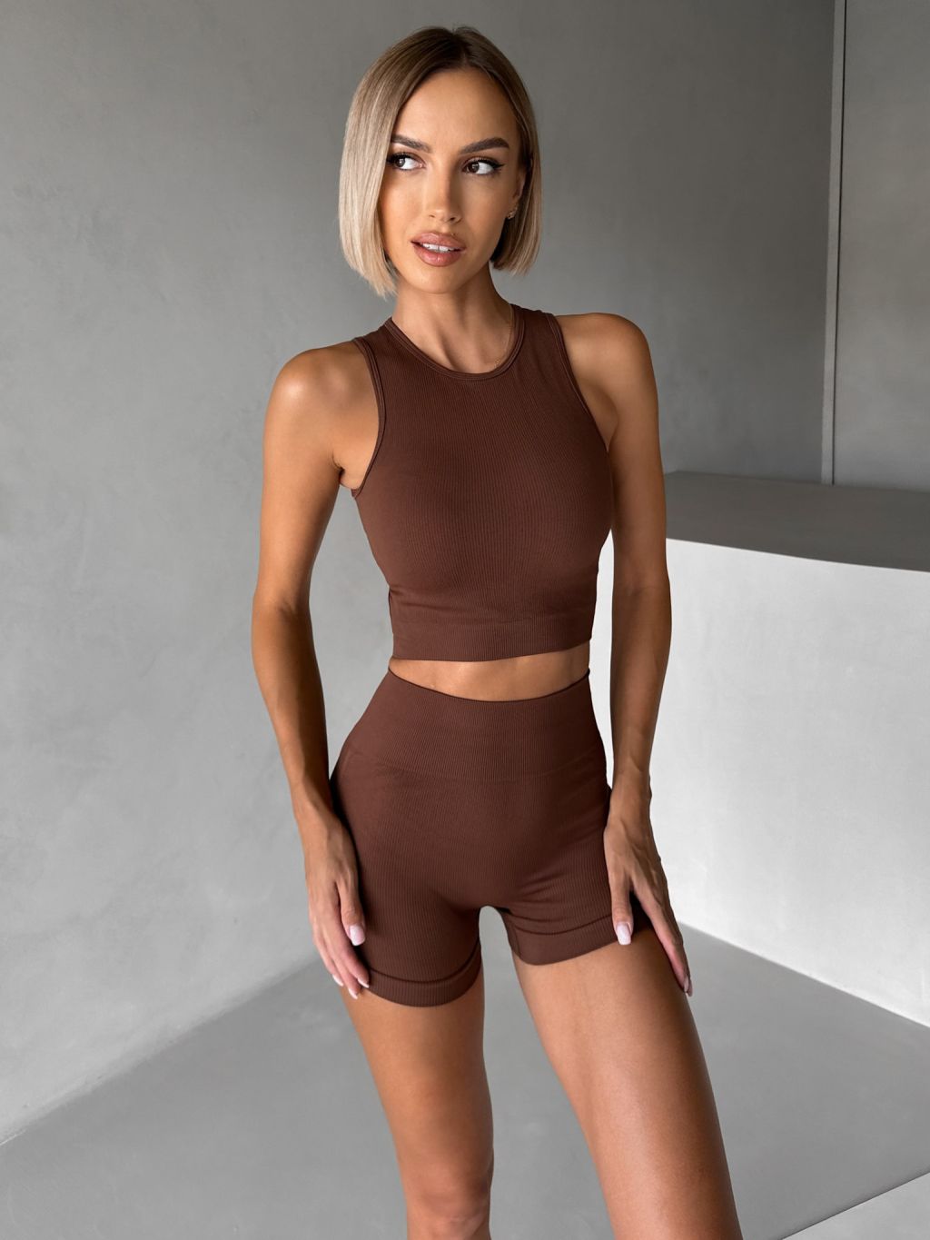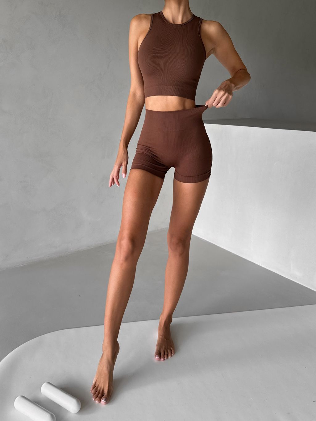 Hnedé športové pusp-up kraťasy BELIRA s riasením