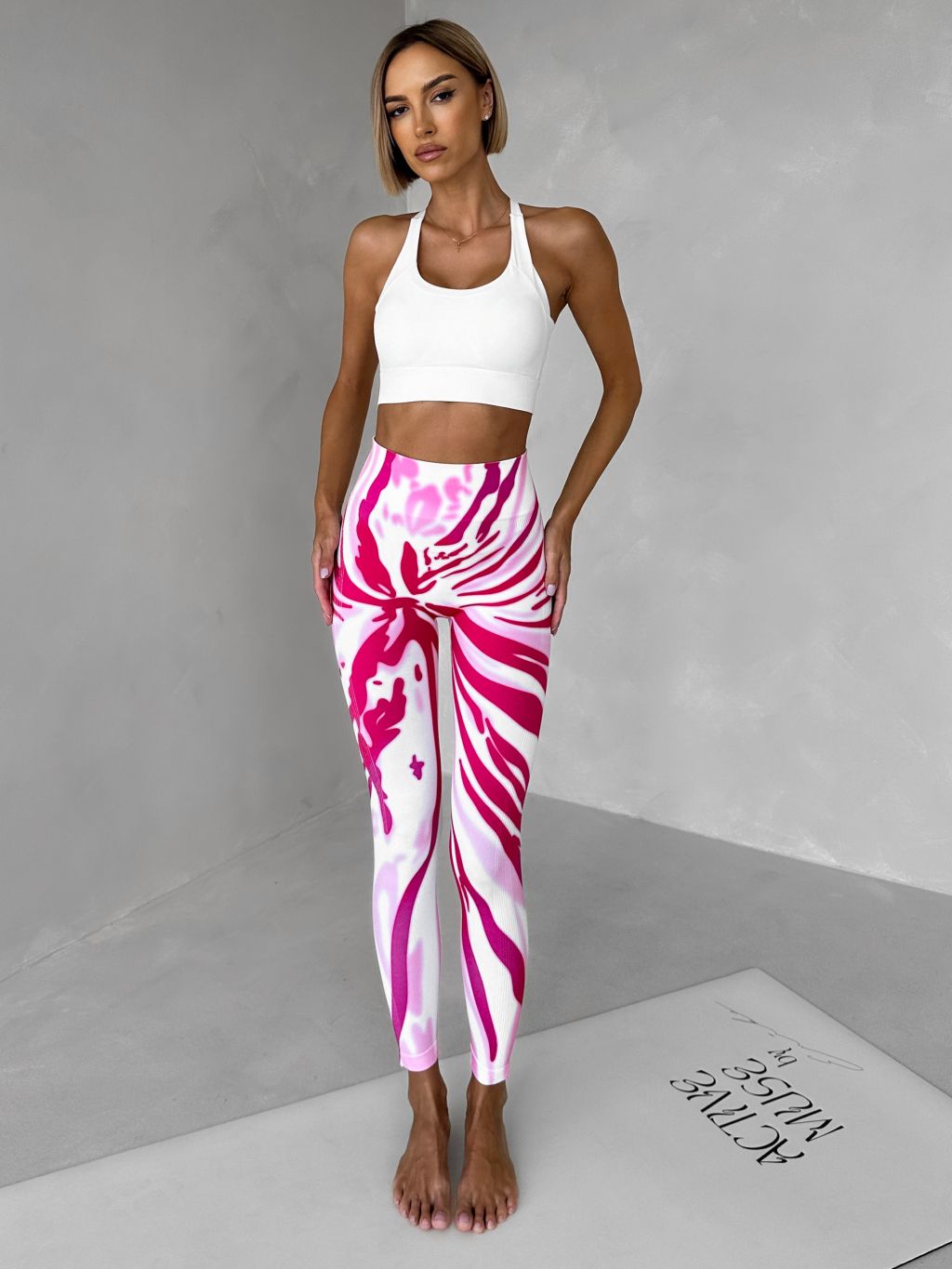 Ružové športové fitness legíny OLIRYA s push-up efektom