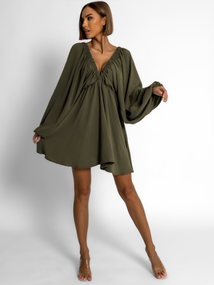 Khaki dlhšie elegantné šaty FEYLING so zaväzovaním
