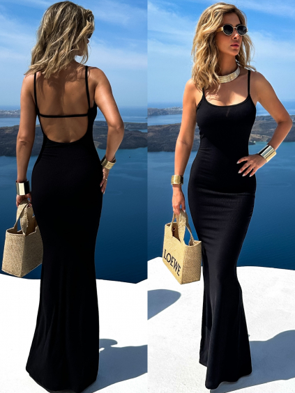 Čierne dlhé letné basic šaty EGMONT s rázporkom