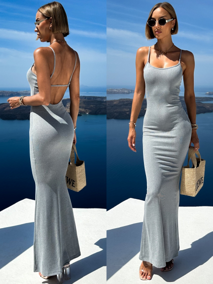 Šedé dlhé jednoduché basic šaty ELIJAH