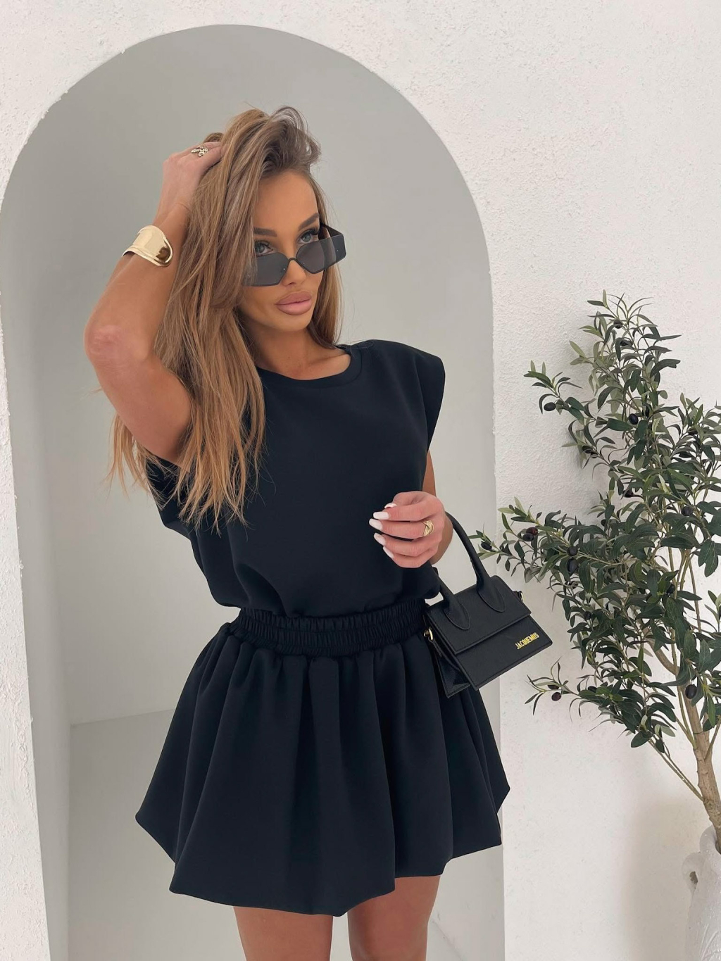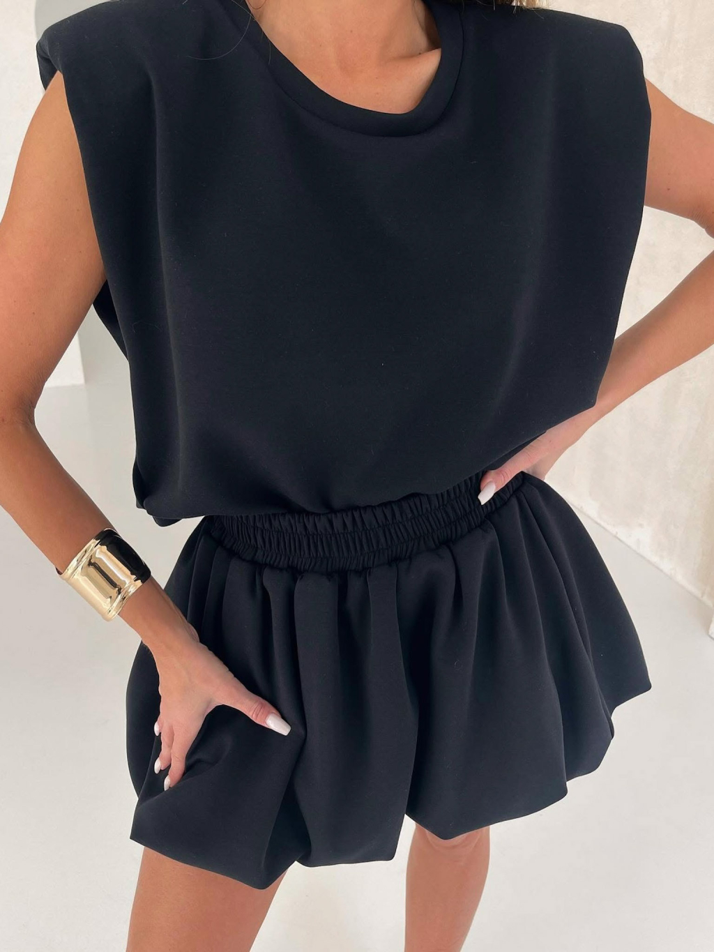 Čierny teplákový štýlový komplet TAPPY so sukňou
