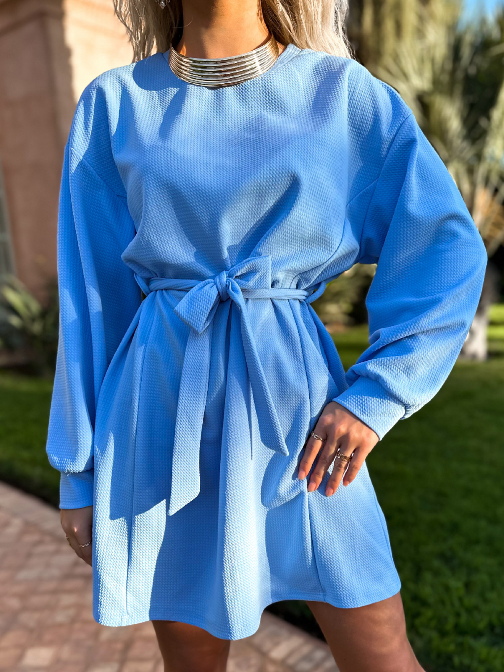 Modré pohodlné šaty ALAMOSAU so zaväzovaním