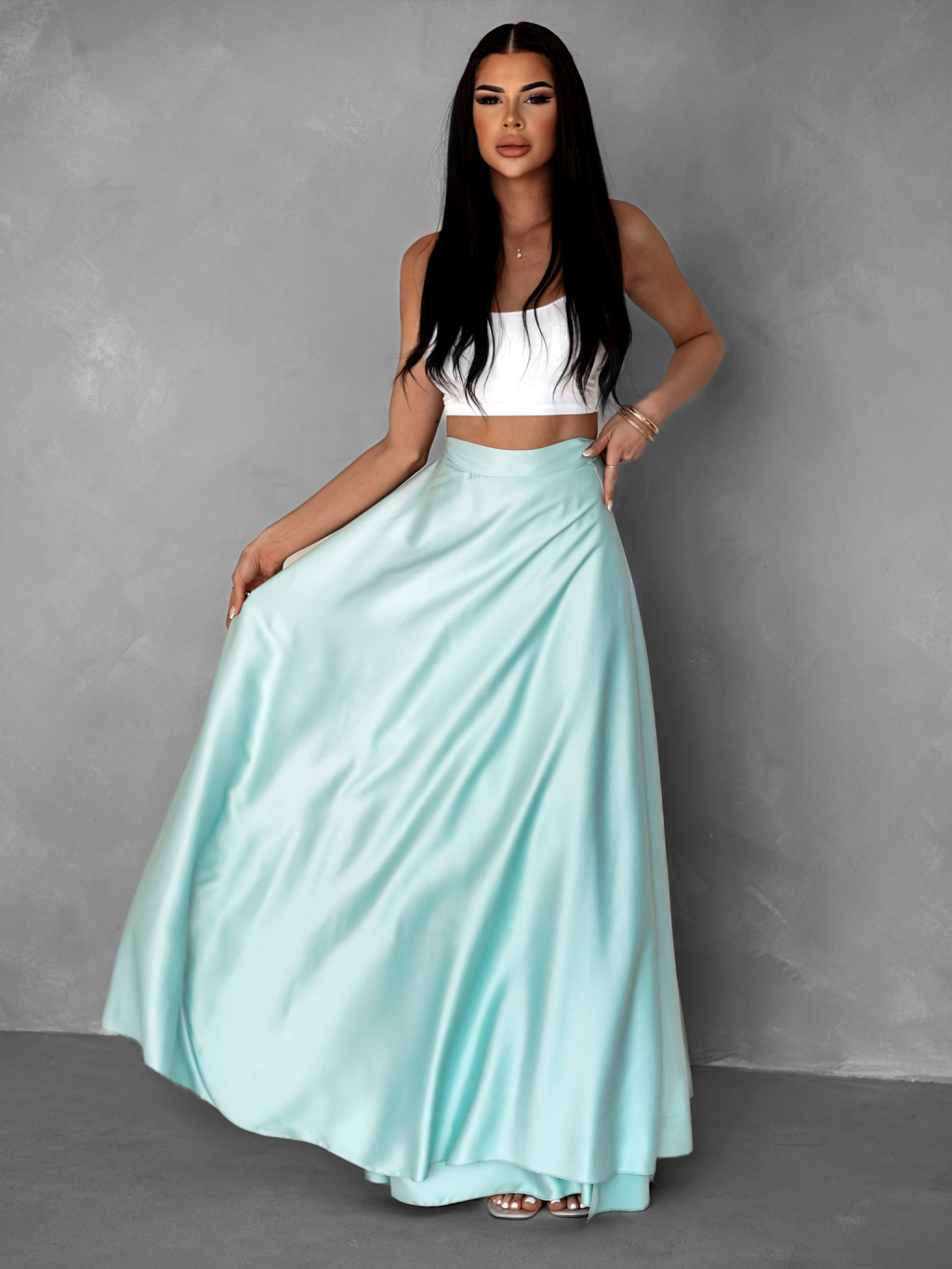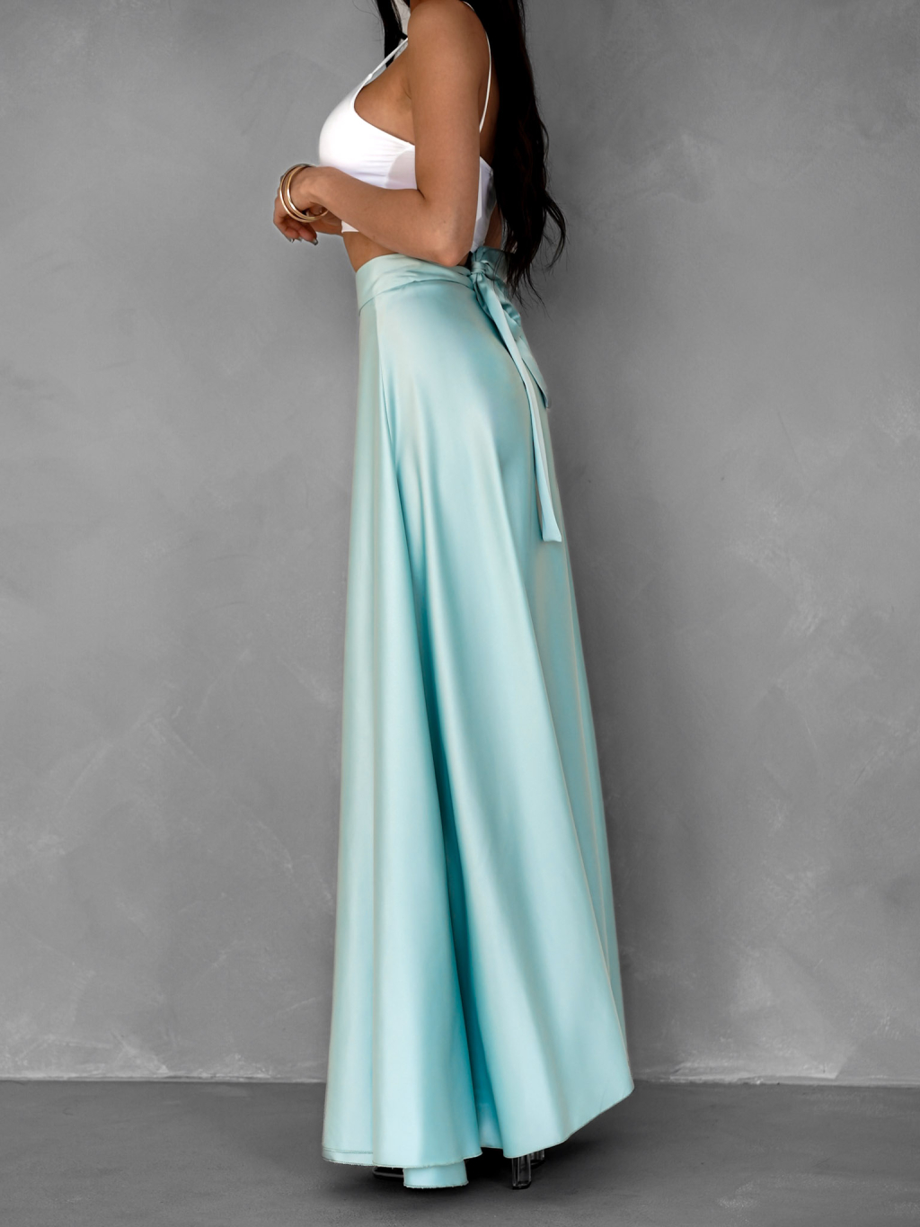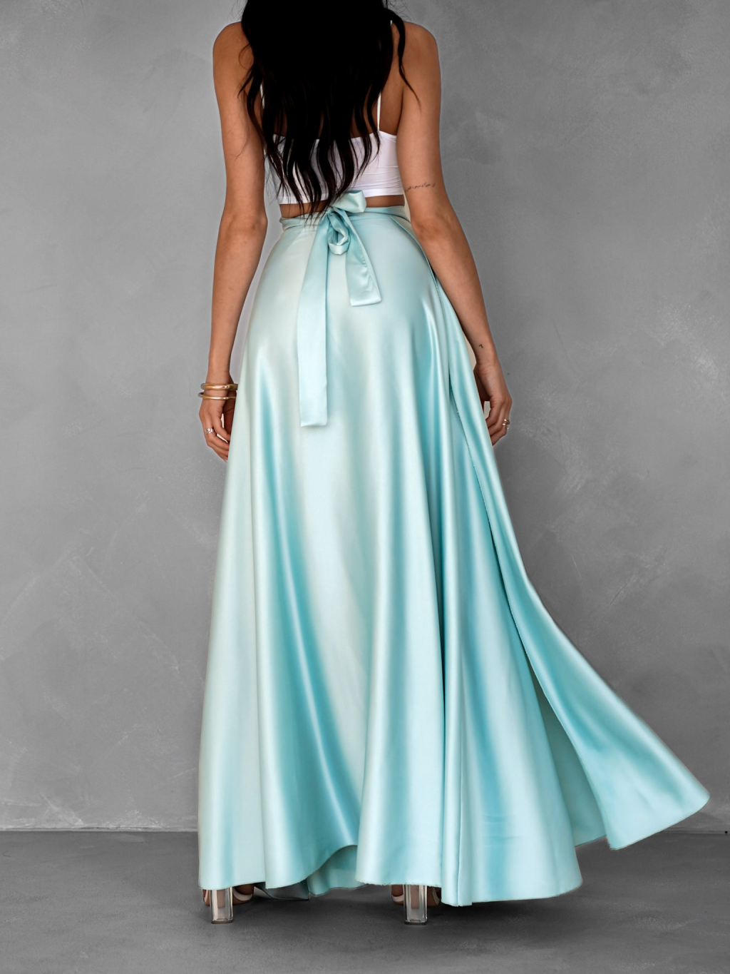 Mentolová saténová dlhá sukňa DENISSE zavinovacia