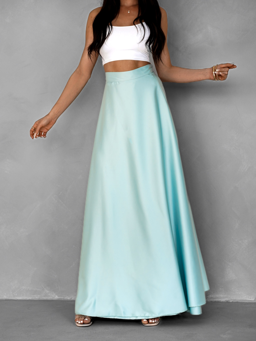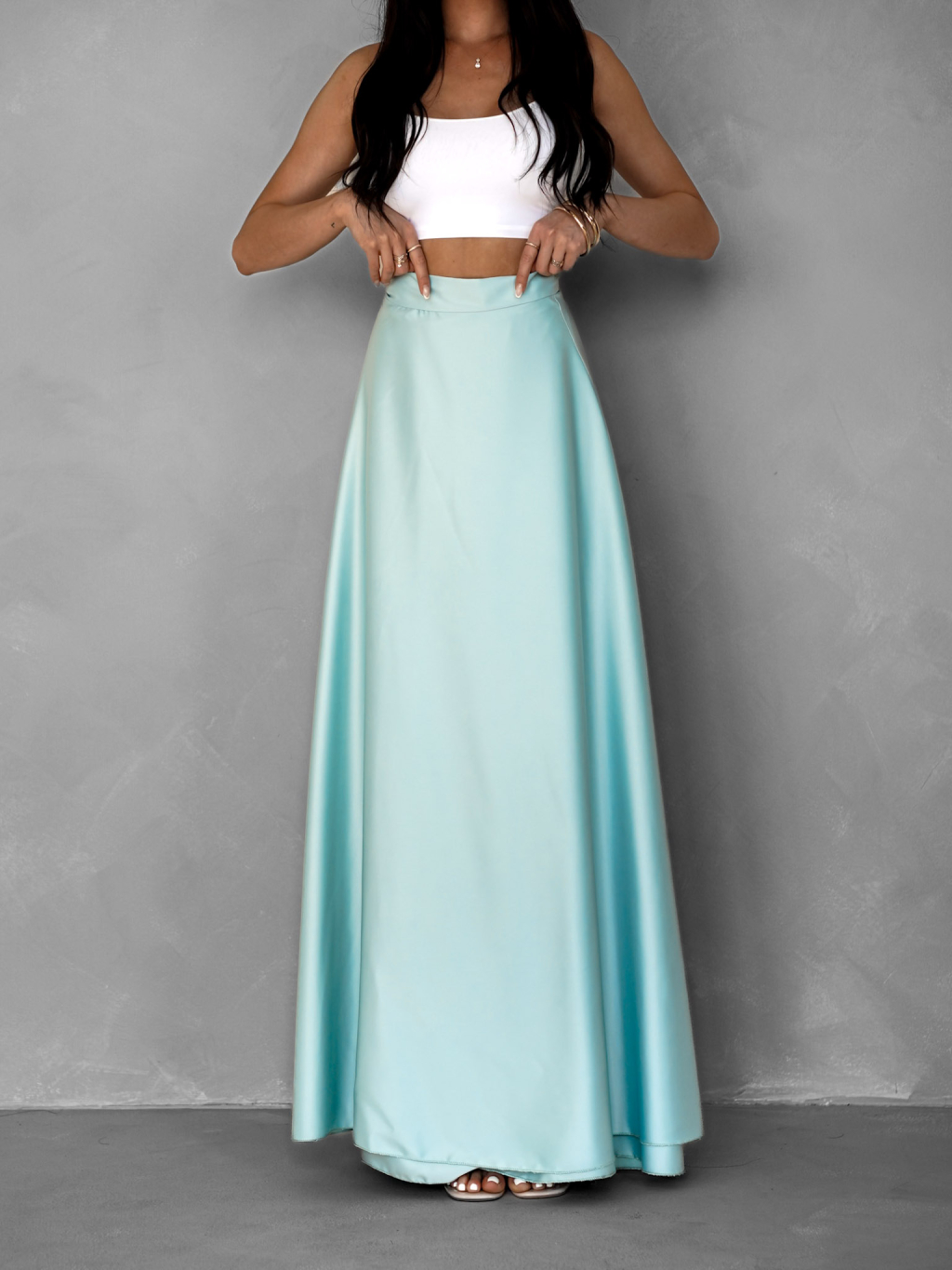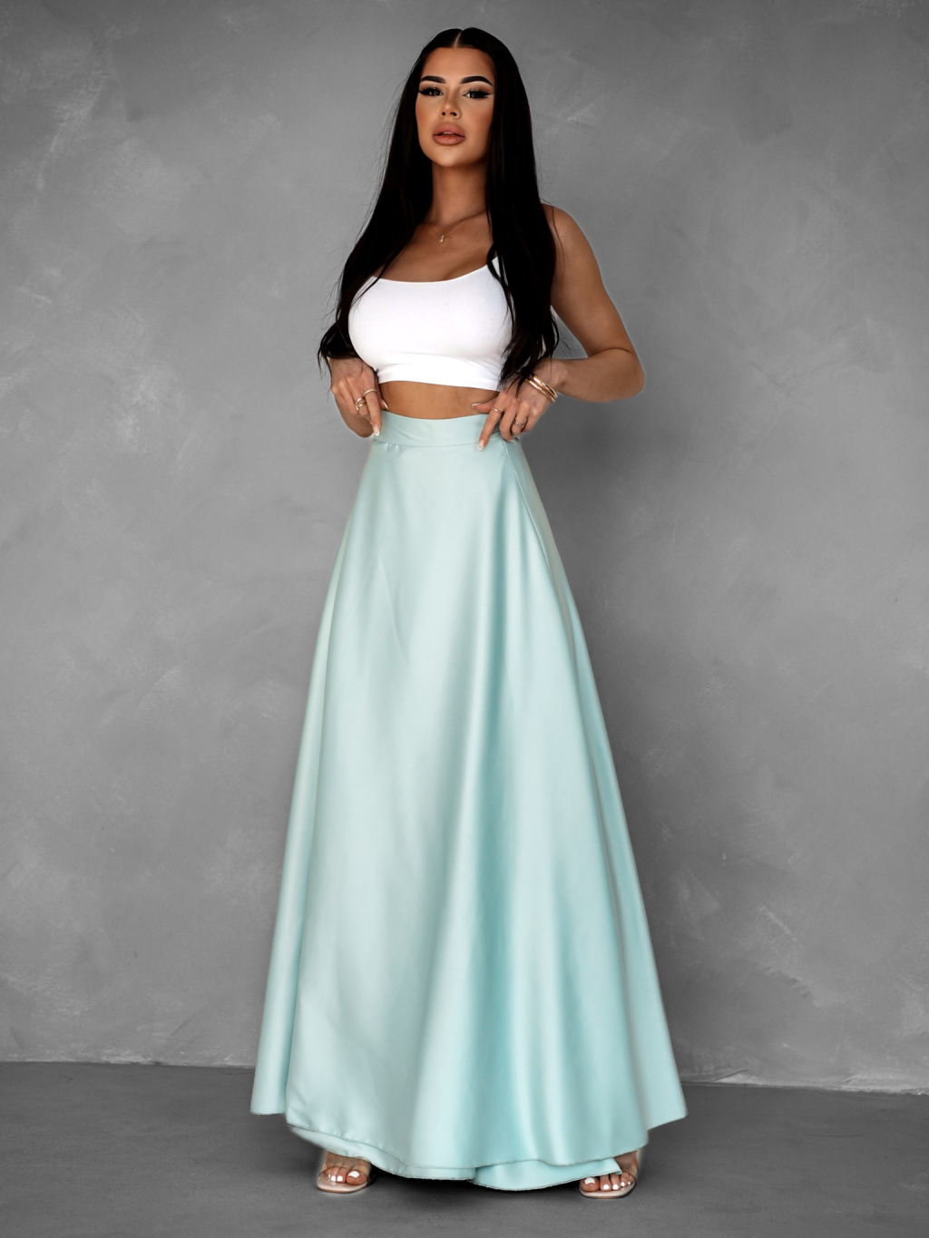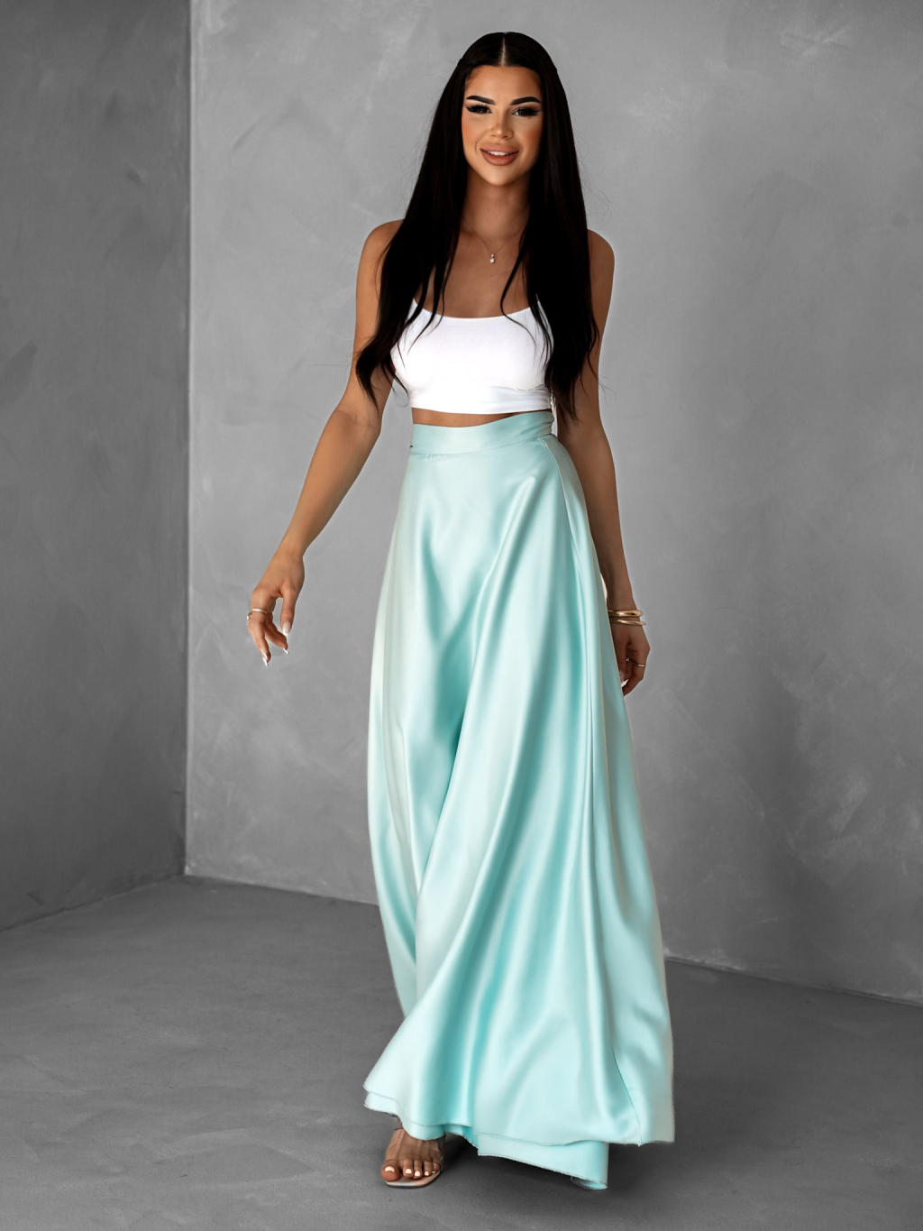 Mentolová saténová dlhá sukňa DENISSE zavinovacia