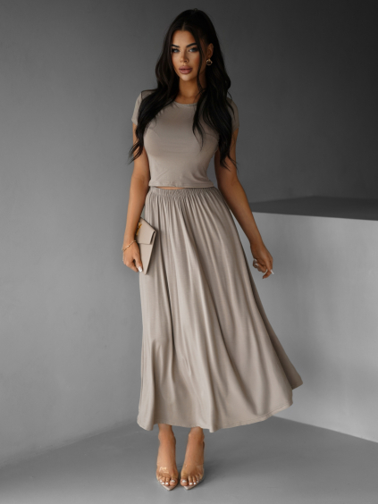 Béžový teplákový krátky komplet TAPPY so sukňou