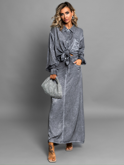 Modrý elegantný trblietavý komplet LARUNE so sukňou