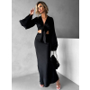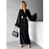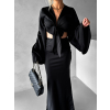 Čierny saténový komplet REGEN so sukňou a košeľou