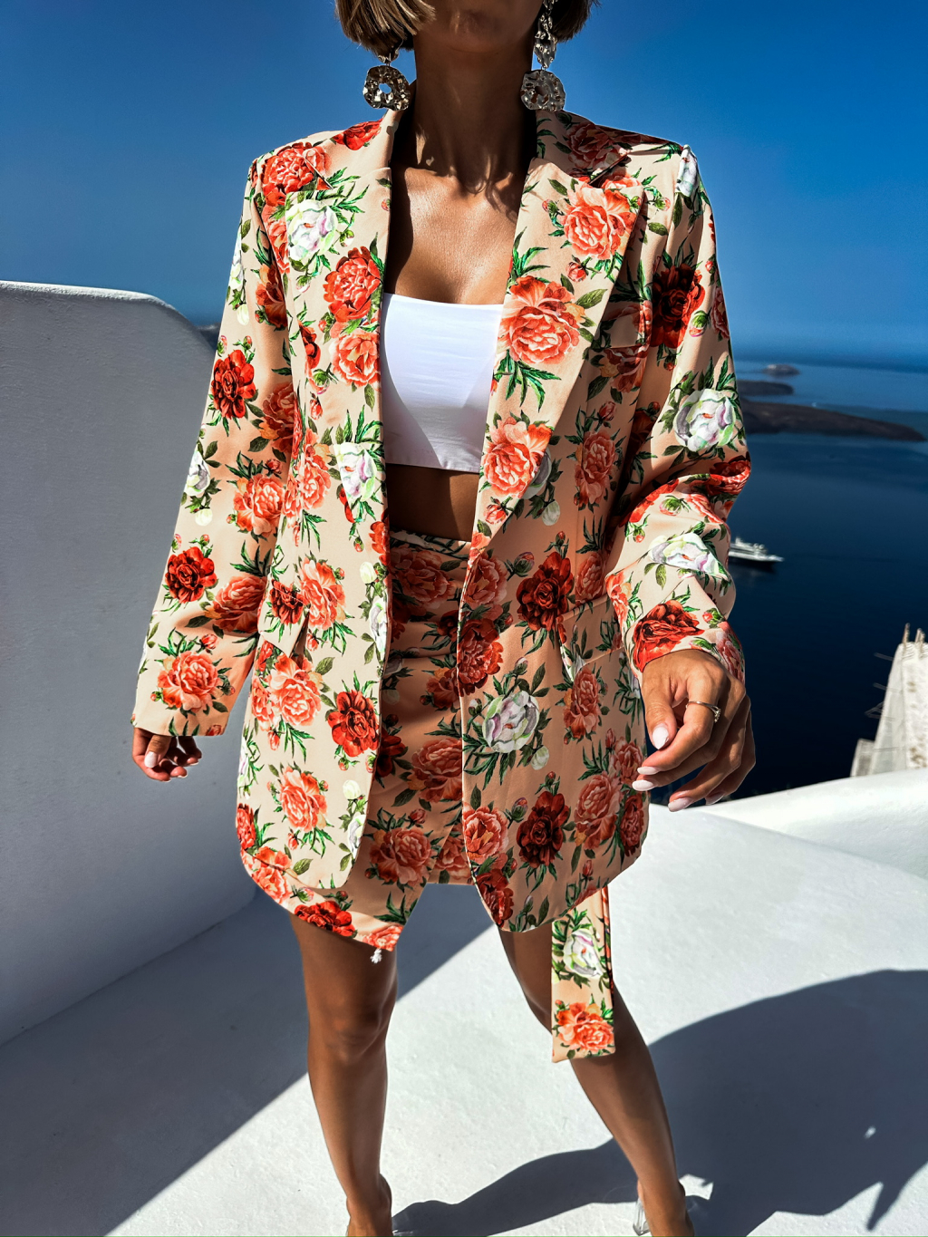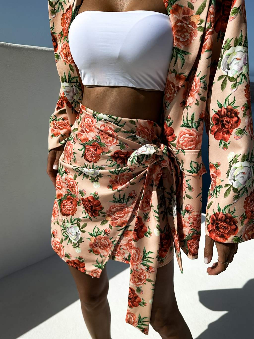Marhuľový kvetovaný komplet so sakom PINKIE