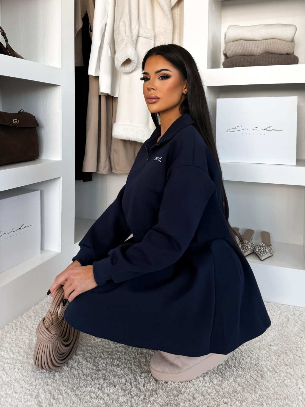 Tmavo modrý teplákový komplet LUNIVON so sukňou
