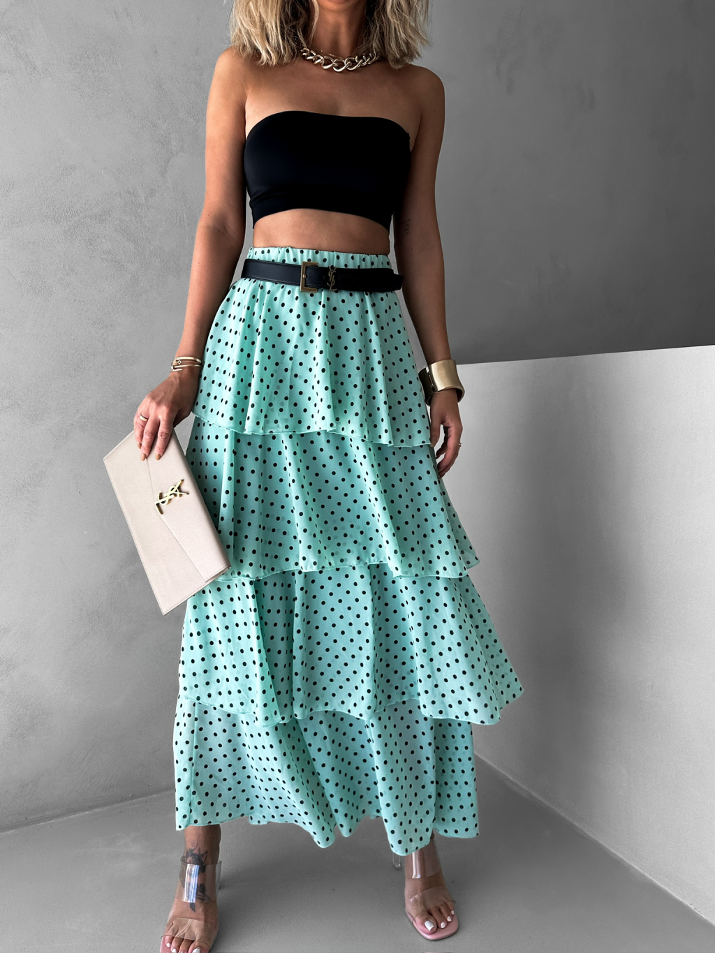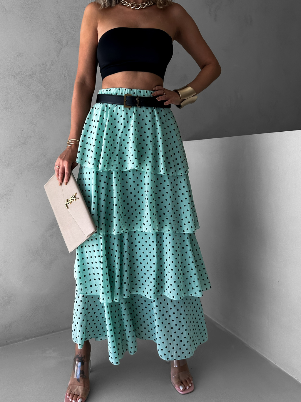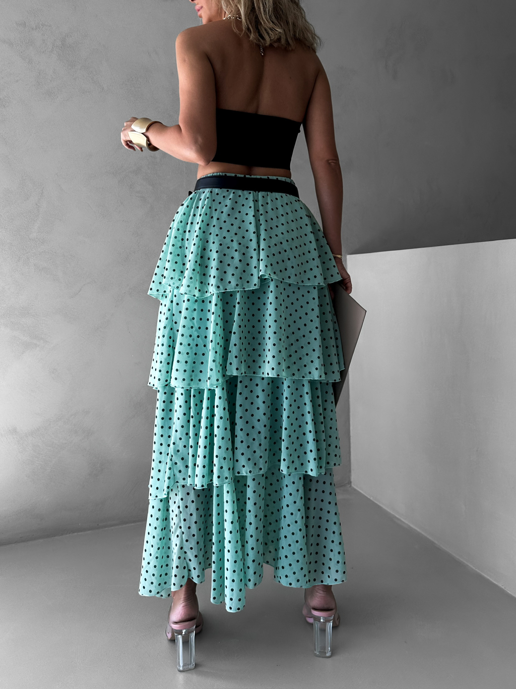 Mentolová maxi volániková sukňa JESSIE s bodkami