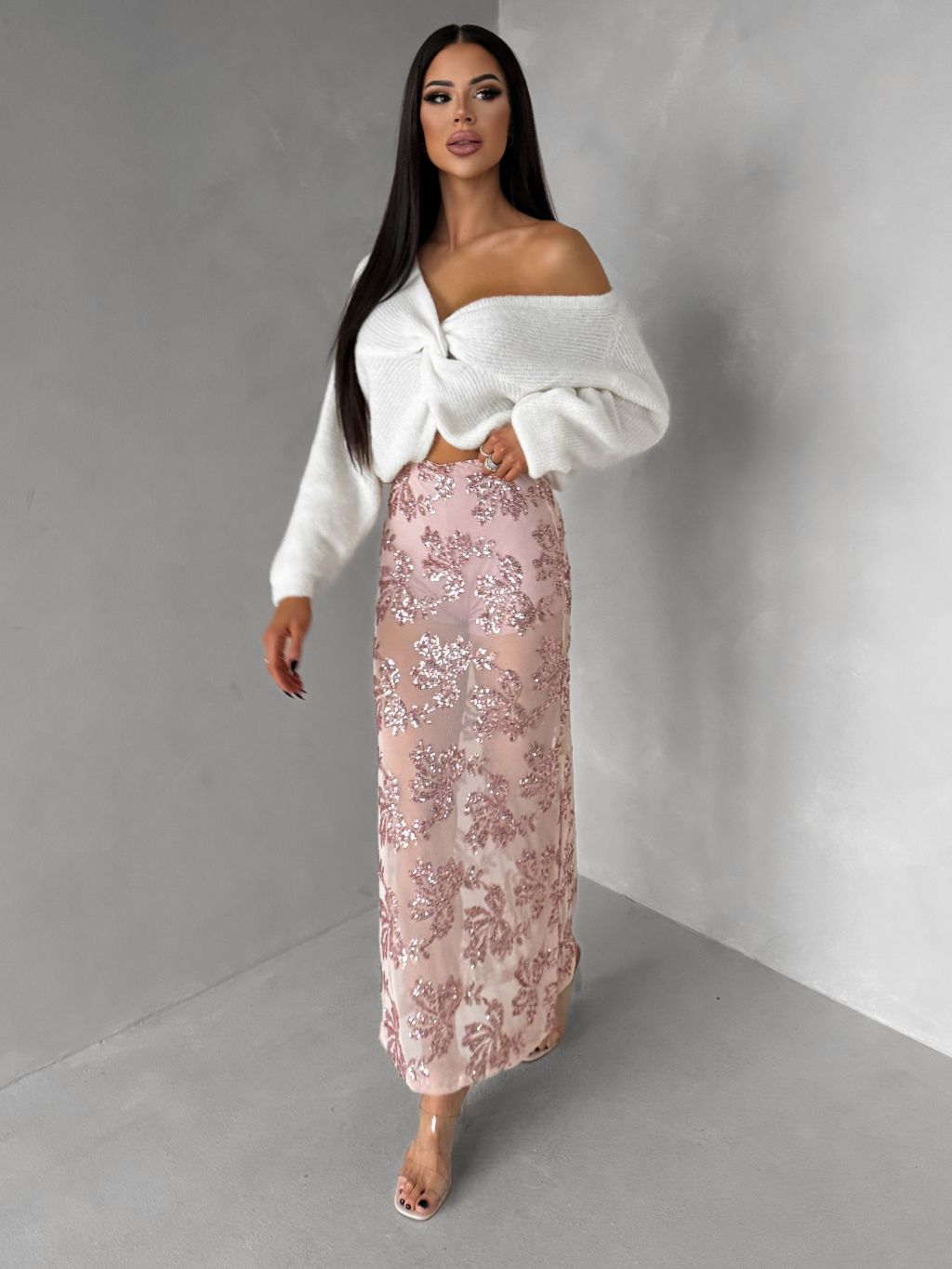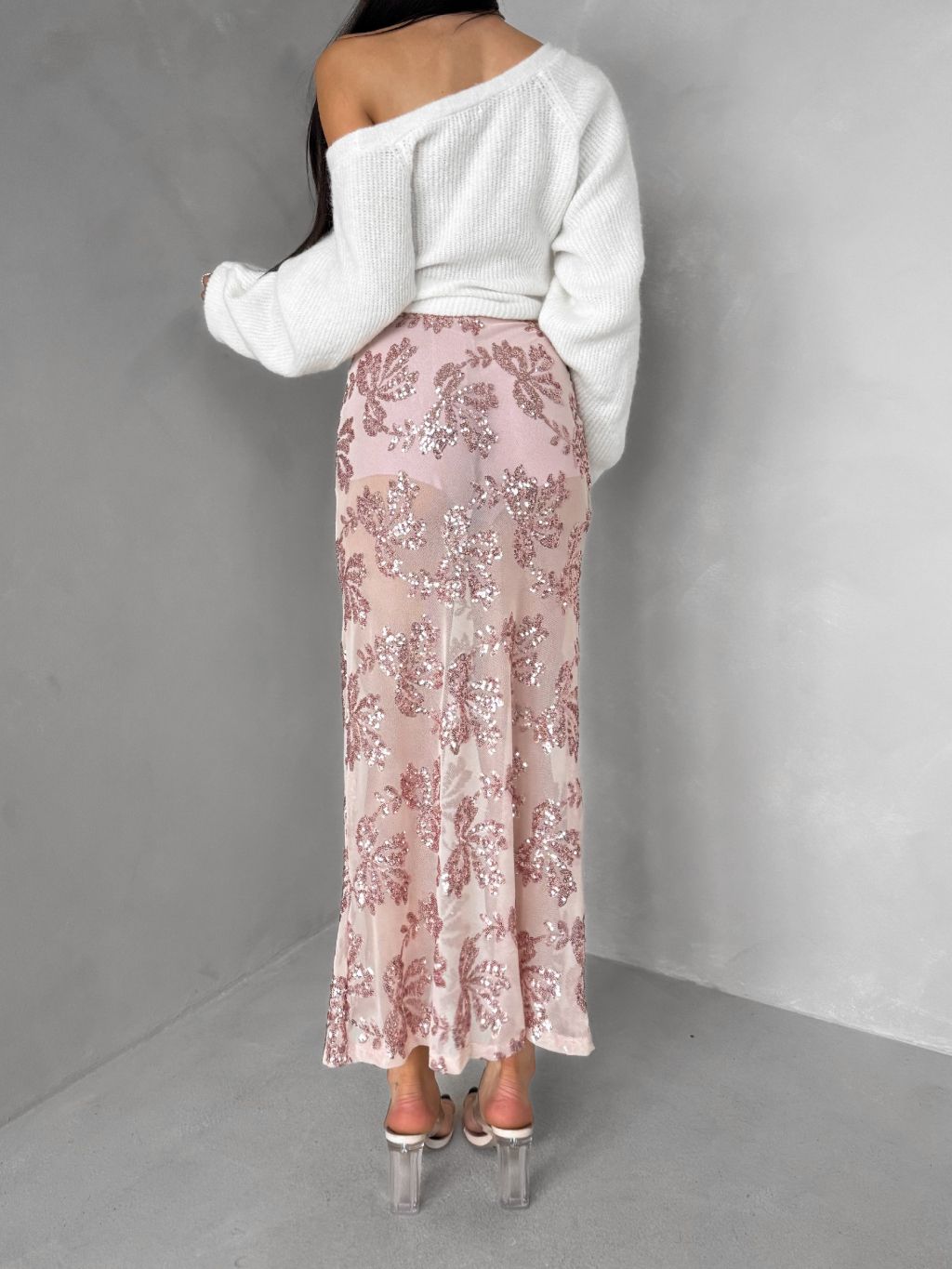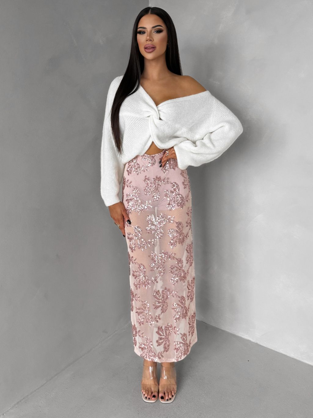Ružová elegantná midi sukňa FASKORO
